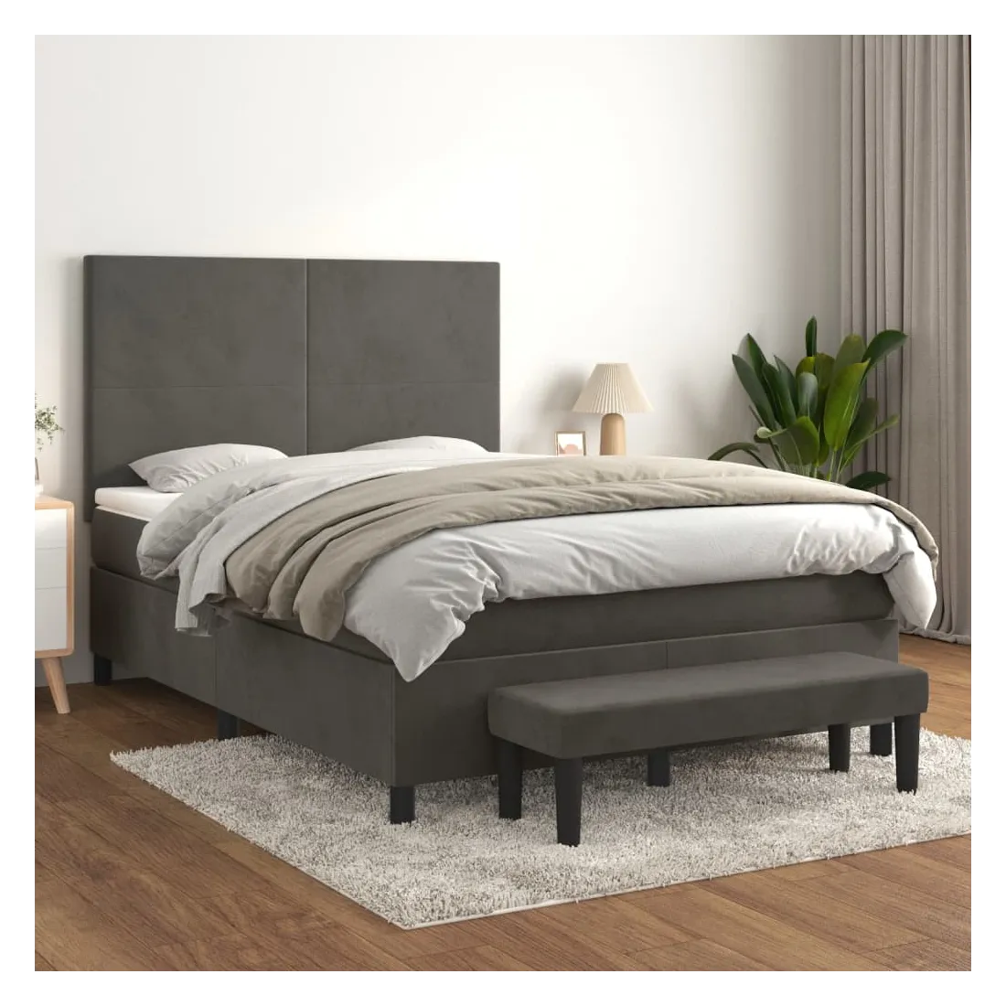 Utilisez ce lit à sommier pour profiter d'une nuit de sommeil réparatrice ! Il vous offre une relaxation maximale et un sommeil agréable. Velours doux : le velours est un tissu doux et luxueux qui se reconnaît à son tas dense de fibres uniformément coupées qui ont une touche lisse. Le tissu en velours présente un toucher doux distinctif, ce qui le rend confortable au toucher.Tête de lit pratique : la tête de lit est réglable en hauteur selon vos préférences. La tête de lit vous offre un excellent soutien du dos lorsque vous êtes assis dans votre lit pour lire ou regarder la télévision.Matelas à ressorts ensachés : le ressort ensaché individuel intégré est connu pour sa très haute qualité tout en assurant un haut niveau de durabilité et d'adaptabilité. Il peut absorber efficacement le bruit et les chocs causés par les sauts et les rotations.Support moyen-dur : ce matelas de lit offre une stabilité accrue et juste le niveau de fermeté sans sacrifier le confort. Il est donc idéal pour les personnes qui dorment sur le dos ou sur le ventre.Protège-matelas doux pour la peau : le protège-matelas est recouvert d'un tissu résistant et doux pour la peau, ce qui le rend souple et confortable.Banc multifonctionnel : ce banc peut servir de siège supplémentaire dans votre maison. Il peut également être utilisé comme banc de bout de lit. Remarque :Pour des raisons d'hygiène, le matelas ne peut pas être retourné si l'emballage est retiré ou ouvert.Chaque produit est livré avec un manuel de montage dans la boîte pour un montage facile.
