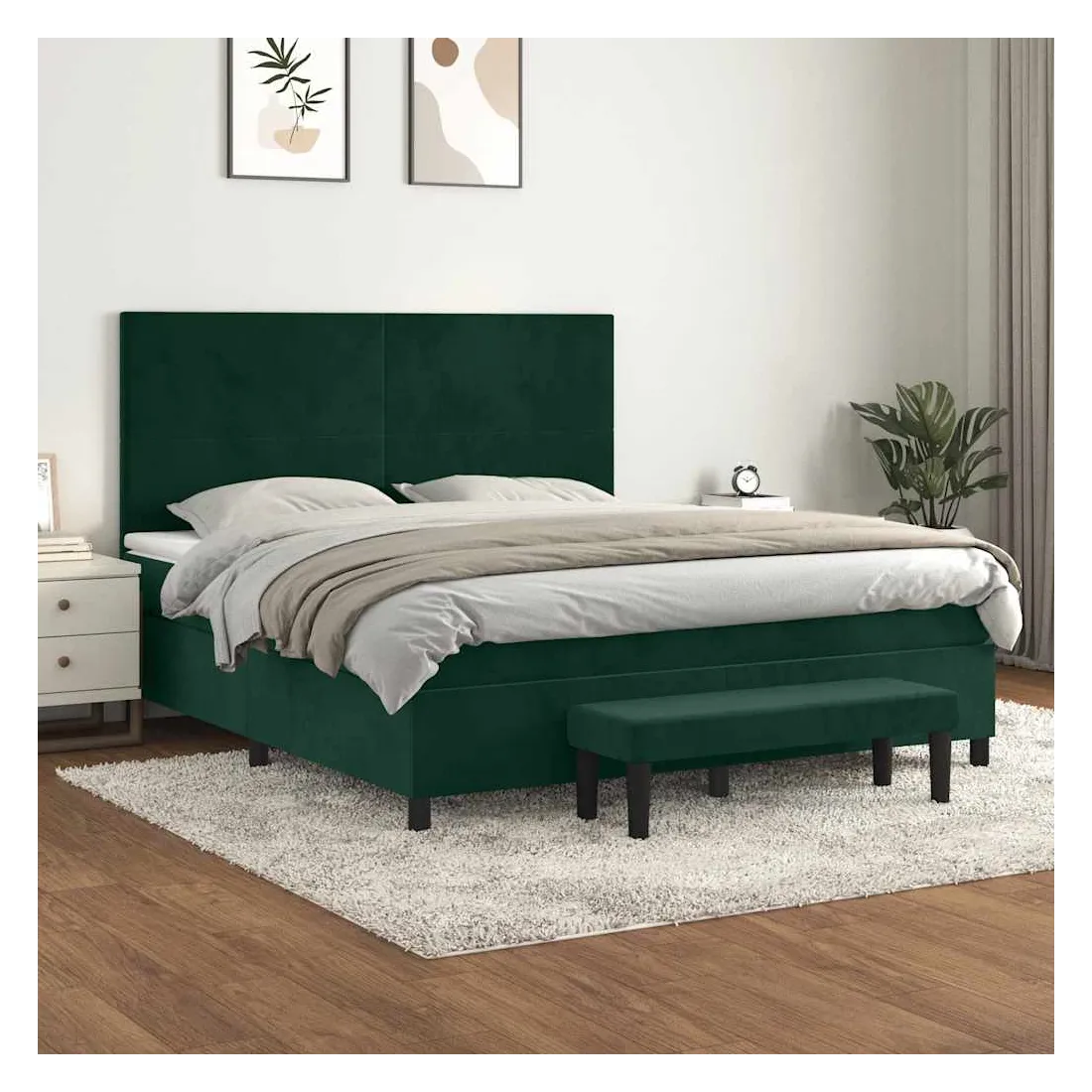 Utilisez ce lit à sommier pour profiter d'une nuit de sommeil réparatrice ! Il vous offre une relaxation maximale et un sommeil agréable. Velours doux : le velours est un tissu doux et luxueux qui se reconnaît à son tas dense de fibres uniformément coupées qui ont une touche lisse. Le tissu en velours présente un toucher doux distinctif, ce qui le rend confortable au toucher.Tête de lit pratique : la tête de lit est réglable en hauteur selon vos préférences. La tête de lit vous offre un excellent soutien du dos lorsque vous êtes assis dans votre lit pour lire ou regarder la télévision.Matelas à ressorts ensachés : le ressort ensaché individuel intégré est connu pour sa très haute qualité tout en assurant un haut niveau de durabilité et d'adaptabilité. Il peut absorber efficacement le bruit et les chocs causés par les sauts et les rotations.Support moyen-dur : ce matelas de lit offre une stabilité accrue et juste le niveau de fermeté sans sacrifier le confort. Il est donc idéal pour les personnes qui dorment sur le dos ou sur le ventre.Protège-matelas doux pour la peau : le protège-matelas est recouvert d'un tissu résistant et doux pour la peau, ce qui le rend souple et confortable.Banc multifonctionnel : ce banc peut servir de siège supplémentaire dans votre maison. Il peut également être utilisé comme banc de bout de lit. Remarque :Pour des raisons d'hygiène, le matelas ne peut pas être retourné si l'emballage est retiré ou ouvert.Chaque produit est livré avec un manuel de montage dans la boîte pour un montage facile.