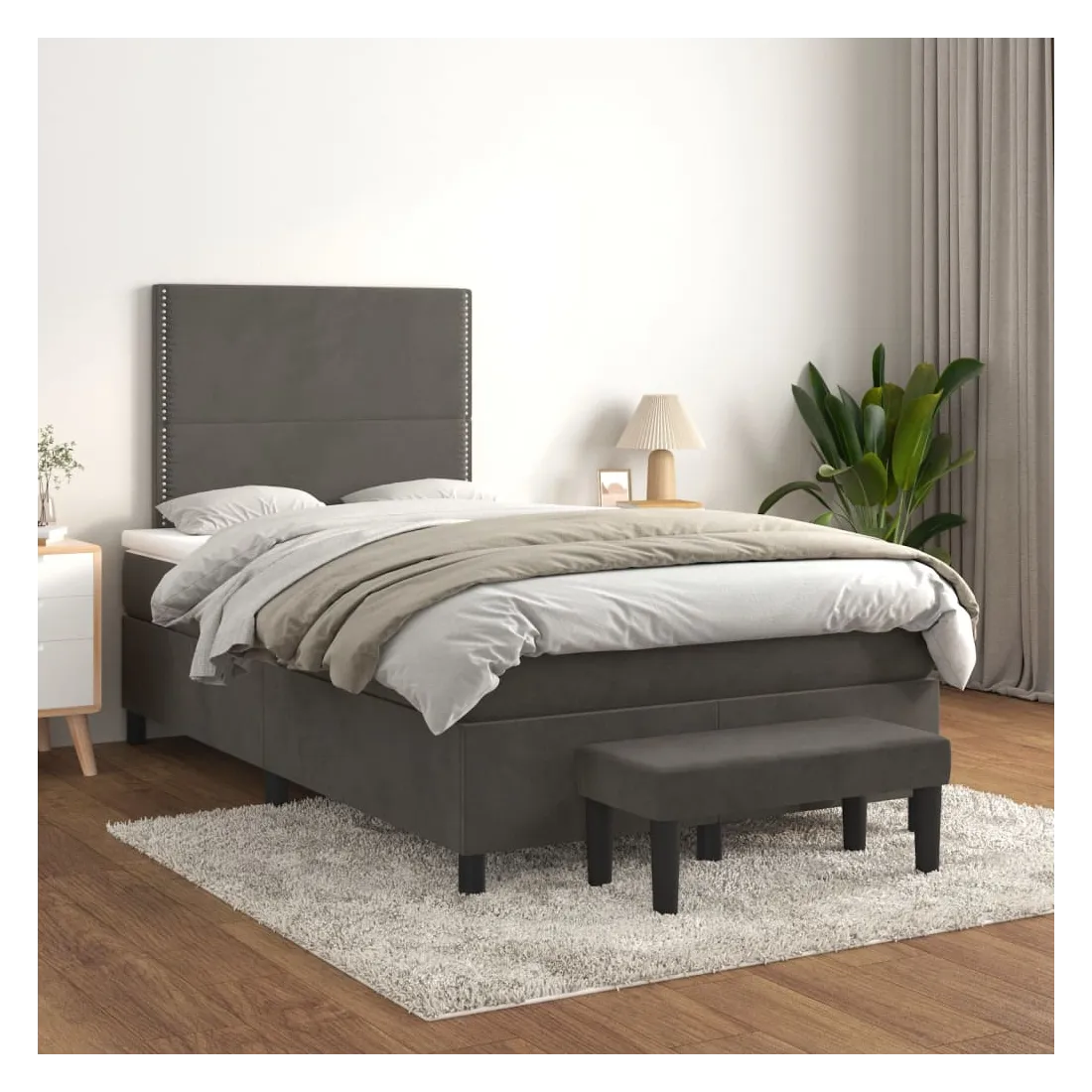 Utilisez ce lit à sommier pour profiter d'une nuit de sommeil réparatrice ! Il vous offre une relaxation maximale et un sommeil agréable. Velours doux : le velours est un tissu doux et luxueux qui se reconnaît à son tas dense de fibres uniformément coupées qui ont une touche lisse. Le tissu en velours présente un toucher doux distinctif, ce qui le rend confortable au toucher.Tête de lit pratique : la tête de lit est réglable en hauteur selon vos préférences. La tête de lit vous offre un excellent soutien du dos lorsque vous êtes assis dans votre lit pour lire ou regarder la télévision.Matelas à ressorts ensachés : le ressort ensaché individuel intégré est connu pour sa très haute qualité tout en assurant un haut niveau de durabilité et d'adaptabilité. Il peut absorber efficacement le bruit et les chocs causés par les sauts et les rotations.Support moyen-dur : ce matelas de lit offre une stabilité accrue et juste le niveau de fermeté sans sacrifier le confort. Il est donc idéal pour les personnes qui dorment sur le dos ou sur le ventre.Protège-matelas doux pour la peau : le protège-matelas est recouvert d'un tissu résistant et doux pour la peau, ce qui le rend souple et confortable.Banc multifonctionnel : ce banc peut servir de siège supplémentaire dans votre maison. Il peut également être utilisé comme banc de bout de lit. Remarque :Pour des raisons d'hygiène, le matelas ne peut pas être retourné si l'emballage est retiré ou ouvert.Chaque produit est livré avec un manuel de montage dans la boîte pour un montage facile.
