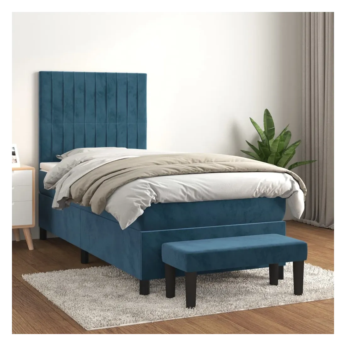 Sommier à lattes de lit et matelas Bleu foncé 80x200 cm Velours