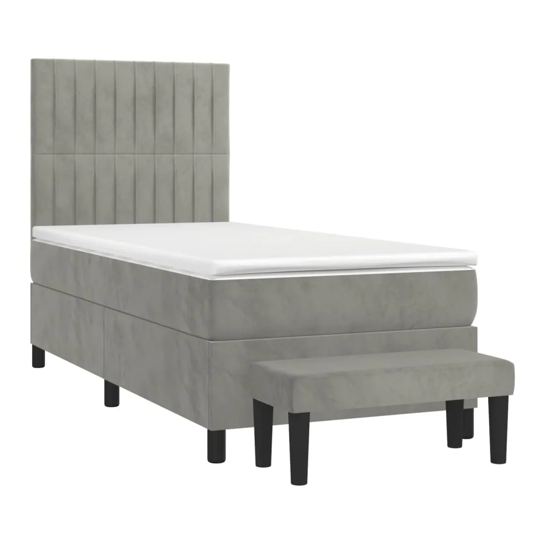 Sommier à lattes de lit et matelas Gris clair 90x190 cm Velours