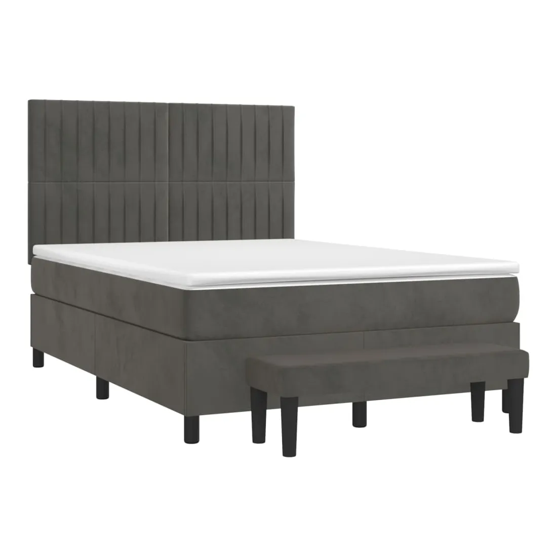 Utilisez ce lit à sommier pour profiter d'une nuit de sommeil réparatrice ! Il vous offre une relaxation maximale et un sommeil agréable. Velours doux : le velours est un tissu doux et luxueux qui se reconnaît à son tas dense de fibres uniformément coupées qui ont une touche lisse. Le tissu en velours présente un toucher doux distinctif, ce qui le rend confortable au toucher.Tête de lit pratique : la tête de lit est réglable en hauteur selon vos préférences. La tête de lit vous offre un excellent soutien du dos lorsque vous êtes assis dans votre lit pour lire ou regarder la télévision.Matelas à ressorts ensachés : le ressort ensaché individuel intégré est connu pour sa très haute qualité tout en assurant un haut niveau de durabilité et d'adaptabilité. Il peut absorber efficacement le bruit et les chocs causés par les sauts et les rotations.Support moyen-dur : ce matelas de lit offre une stabilité accrue et juste le niveau de fermeté sans sacrifier le confort. Il est donc idéal pour les personnes qui dorment sur le dos ou sur le ventre.Protège-matelas doux pour la peau : le protège-matelas est recouvert d'un tissu résistant et doux pour la peau, ce qui le rend souple et confortable.Banc multifonctionnel : ce banc peut servir de siège supplémentaire dans votre maison. Il peut également être utilisé comme banc de bout de lit. Remarque :Pour des raisons d'hygiène, le matelas ne peut pas être retourné si l'emballage est retiré ou ouvert.Chaque produit est livré avec un manuel de montage dans la boîte pour un montage facile.