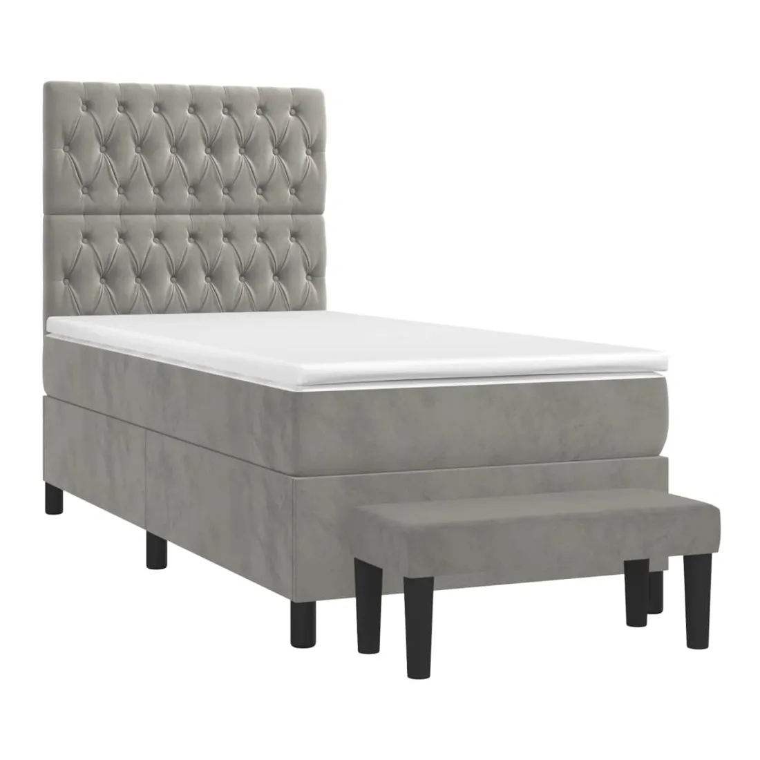 Sommier à lattes de lit et matelas Gris clair 90x200 cm Velours