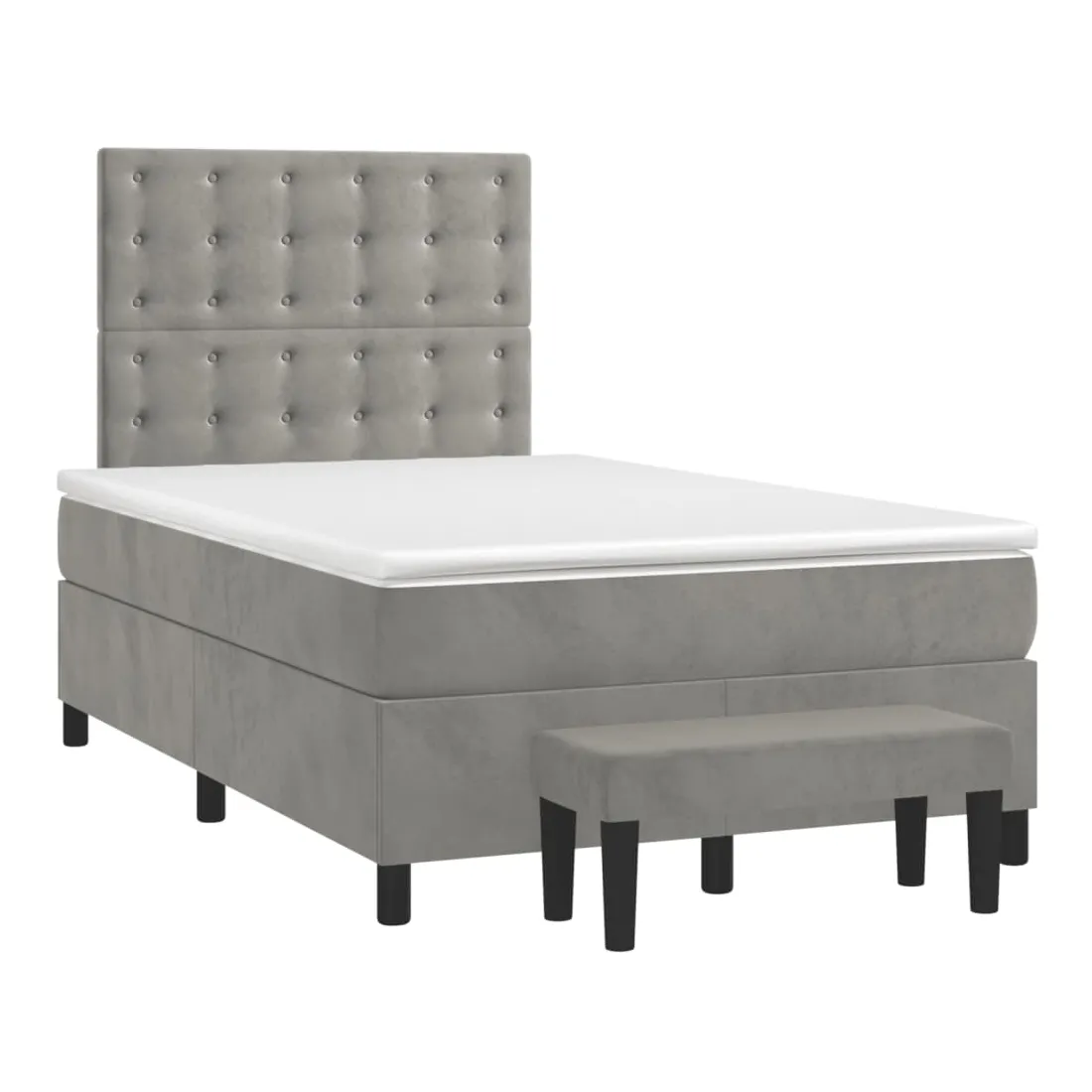 Utilisez ce lit à sommier pour profiter d'une nuit de sommeil réparatrice ! Il vous offre une relaxation maximale et un sommeil agréable. Velours doux : le velours est un tissu doux et luxueux qui se reconnaît à son tas dense de fibres uniformément coupées qui ont une touche lisse. Le tissu en velours présente un toucher doux distinctif, ce qui le rend confortable au toucher.Tête de lit pratique : la tête de lit est réglable en hauteur selon vos préférences. La tête de lit vous offre un excellent soutien du dos lorsque vous êtes assis dans votre lit pour lire ou regarder la télévision.Matelas à ressorts ensachés : le ressort ensaché individuel intégré est connu pour sa très haute qualité tout en assurant un haut niveau de durabilité et d'adaptabilité. Il peut absorber efficacement le bruit et les chocs causés par les sauts et les rotations.Support moyen-dur : ce matelas de lit offre une stabilité accrue et juste le niveau de fermeté sans sacrifier le confort. Il est donc idéal pour les personnes qui dorment sur le dos ou sur le ventre.Protège-matelas doux pour la peau : le protège-matelas est recouvert d'un tissu résistant et doux pour la peau, ce qui le rend souple et confortable.Banc multifonctionnel : ce banc peut servir de siège supplémentaire dans votre maison. Il peut également être utilisé comme banc de bout de lit. Remarque :Pour des raisons d'hygiène, le matelas ne peut pas être retourné si l'emballage est retiré ou ouvert.Chaque produit est livré avec un manuel de montage dans la boîte pour un montage facile.