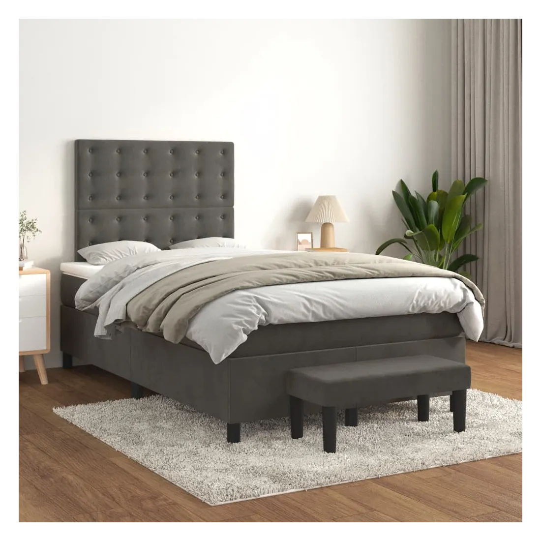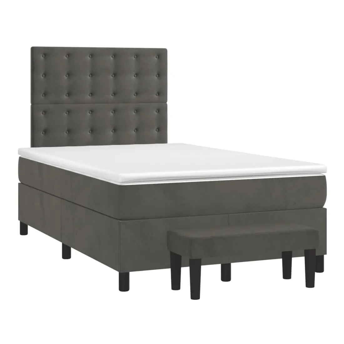 Utilisez ce lit à sommier pour profiter d'une nuit de sommeil réparatrice ! Il vous offre une relaxation maximale et un sommeil agréable. Velours doux : le velours est un tissu doux et luxueux qui se reconnaît à son tas dense de fibres uniformément coupées qui ont une touche lisse. Le tissu en velours présente un toucher doux distinctif, ce qui le rend confortable au toucher.Tête de lit pratique : la tête de lit est réglable en hauteur selon vos préférences. La tête de lit vous offre un excellent soutien du dos lorsque vous êtes assis dans votre lit pour lire ou regarder la télévision.Matelas à ressorts ensachés : le ressort ensaché individuel intégré est connu pour sa très haute qualité tout en assurant un haut niveau de durabilité et d'adaptabilité. Il peut absorber efficacement le bruit et les chocs causés par les sauts et les rotations.Support moyen-dur : ce matelas de lit offre une stabilité accrue et juste le niveau de fermeté sans sacrifier le confort. Il est donc idéal pour les personnes qui dorment sur le dos ou sur le ventre.Protège-matelas doux pour la peau : le protège-matelas est recouvert d'un tissu résistant et doux pour la peau, ce qui le rend souple et confortable.Banc multifonctionnel : ce banc peut servir de siège supplémentaire dans votre maison. Il peut également être utilisé comme banc de bout de lit. Remarque :Pour des raisons d'hygiène, le matelas ne peut pas être retourné si l'emballage est retiré ou ouvert.Chaque produit est livré avec un manuel de montage dans la boîte pour un montage facile.