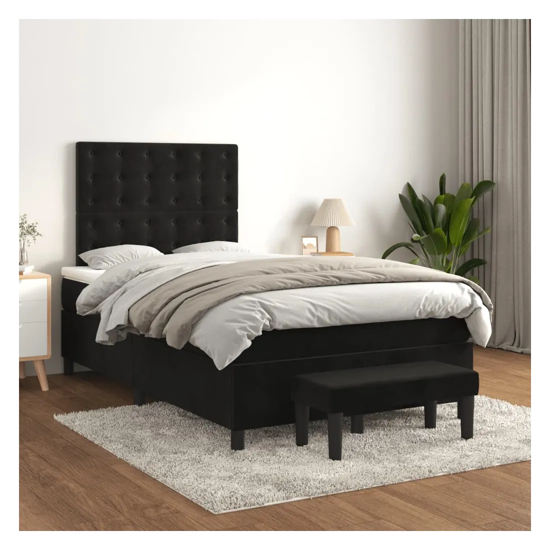 Utilisez ce lit à sommier pour profiter d'une nuit de sommeil réparatrice ! Il vous offre une relaxation maximale et un sommeil agréable. Velours doux : le velours est un tissu doux et luxueux qui se reconnaît à son tas dense de fibres uniformément coupées qui ont une touche lisse. Le tissu en velours présente un toucher doux distinctif, ce qui le rend confortable au toucher.Tête de lit pratique : la tête de lit est réglable en hauteur selon vos préférences. La tête de lit vous offre un excellent soutien du dos lorsque vous êtes assis dans votre lit pour lire ou regarder la télévision.Matelas à ressorts ensachés : le ressort ensaché individuel intégré est connu pour sa très haute qualité tout en assurant un haut niveau de durabilité et d'adaptabilité. Il peut absorber efficacement le bruit et les chocs causés par les sauts et les rotations.Support moyen-dur : ce matelas de lit offre une stabilité accrue et juste le niveau de fermeté sans sacrifier le confort. Il est donc idéal pour les personnes qui dorment sur le dos ou sur le ventre.Protège-matelas doux pour la peau : le protège-matelas est recouvert d'un tissu résistant et doux pour la peau, ce qui le rend souple et confortable.Banc multifonctionnel : ce banc peut servir de siège supplémentaire dans votre maison. Il peut également être utilisé comme banc de bout de lit. Remarque :Pour des raisons d'hygiène, le matelas ne peut pas être retourné si l'emballage est retiré ou ouvert.Chaque produit est livré avec un manuel de montage dans la boîte pour un montage facile.