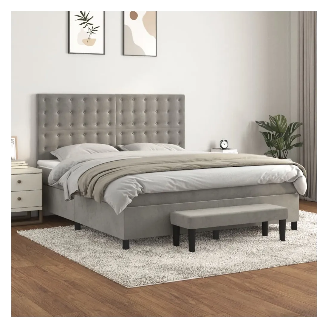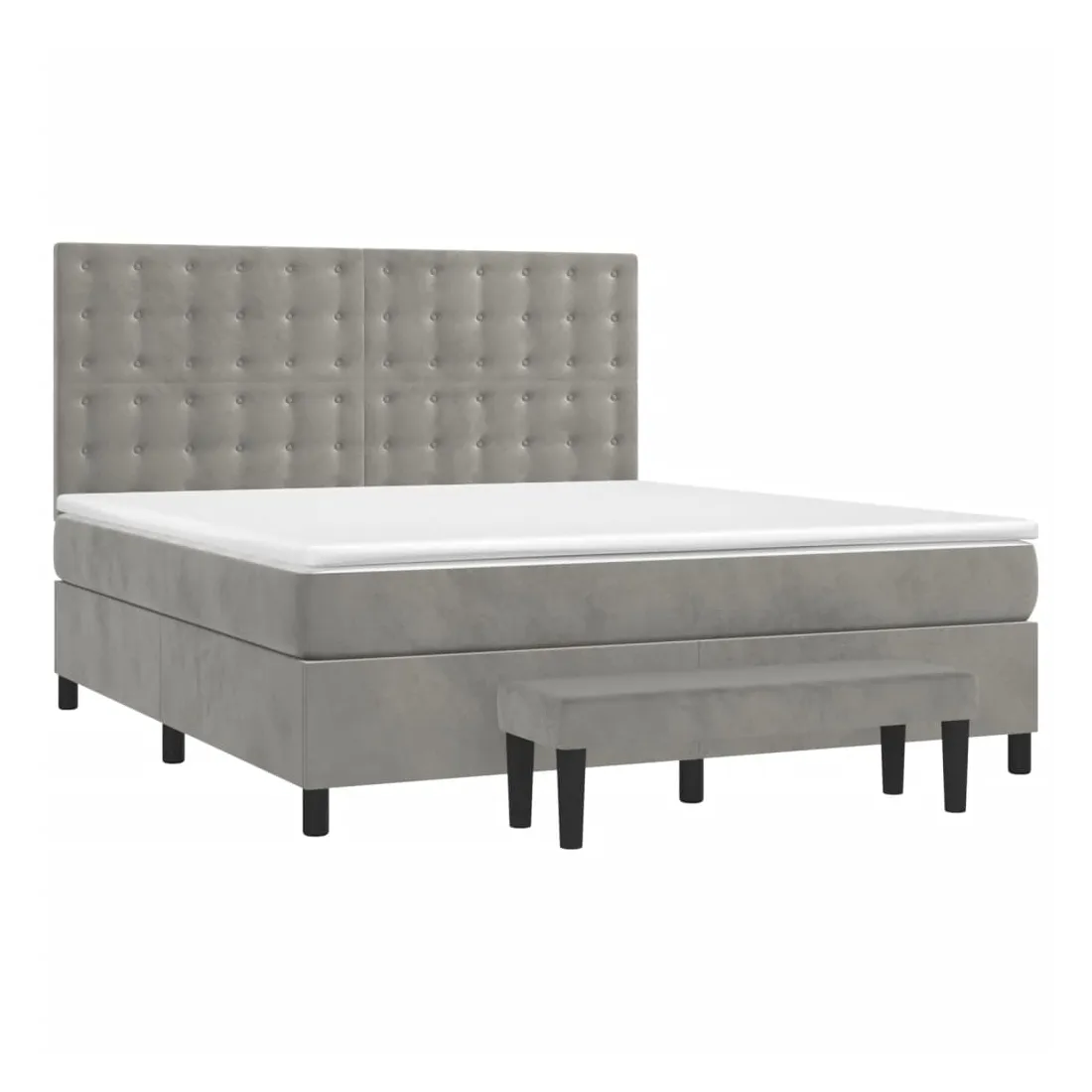 Utilisez ce lit à sommier pour profiter d'une nuit de sommeil réparatrice ! Il vous offre une relaxation maximale et un sommeil agréable. Velours doux : le velours est un tissu doux et luxueux qui se reconnaît à son tas dense de fibres uniformément coupées qui ont une touche lisse. Le tissu en velours présente un toucher doux distinctif, ce qui le rend confortable au toucher.Tête de lit pratique : la tête de lit est réglable en hauteur selon vos préférences. La tête de lit vous offre un excellent soutien du dos lorsque vous êtes assis dans votre lit pour lire ou regarder la télévision.Matelas à ressorts ensachés : le ressort ensaché individuel intégré est connu pour sa très haute qualité tout en assurant un haut niveau de durabilité et d'adaptabilité. Il peut absorber efficacement le bruit et les chocs causés par les sauts et les rotations.Support moyen-dur : ce matelas de lit offre une stabilité accrue et juste le niveau de fermeté sans sacrifier le confort. Il est donc idéal pour les personnes qui dorment sur le dos ou sur le ventre.Protège-matelas doux pour la peau : le protège-matelas est recouvert d'un tissu résistant et doux pour la peau, ce qui le rend souple et confortable.Banc multifonctionnel : ce banc peut servir de siège supplémentaire dans votre maison. Il peut également être utilisé comme banc de bout de lit. Remarque :Pour des raisons d'hygiène, le matelas ne peut pas être retourné si l'emballage est retiré ou ouvert.Chaque produit est livré avec un manuel de montage dans la boîte pour un montage facile.