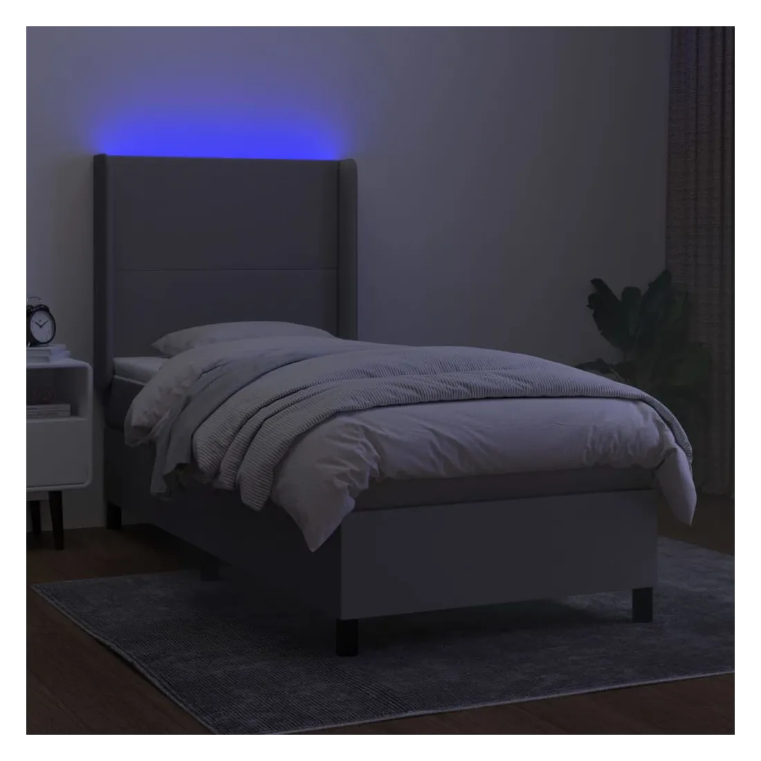 Utilisez ce sommier tapissier avec matelas et LED pour profiter d'un sommeil réparateur ! C'est le point central de votre chambre à coucher. Tissu durable : le tissu présente un aspect simple et épuré, et il est respirant et durable.Tête de lit pratique : la tête de lit est réglable en hauteur selon vos préférences. La tête de lit vous offre un excellent soutien du dos lorsque vous êtes assis dans votre lit pour lire ou regarder la télévision.Bande LED colorée : apportez de l'éclairage dans l'obscurité avec des lumières LED colorées !Matelas à ressorts ensachés : le ressort ensaché individuel intégré est connu pour sa très haute qualité tout en assurant un haut niveau de durabilité et d'adaptabilité. Il peut absorber efficacement le bruit et les chocs causés par les sauts et les rotations.Protège-matelas doux pour la peau : le protège-matelas est recouvert d'un tissu résistant et doux pour la peau, ce qui le rend souple et confortable. Remarque :Pour des raisons d'hygiène, le matelas ne peut pas être retourné si l'emballage est retiré ou ouvert.Seule la partie avec un symbole de ciseaux peut être coupée et seule la partie avec l'USB continuera à fonctionner comme avant.Chaque produit est livré avec un manuel de montage dans la boîte pour un montage facile.Ce produit est doté d'un connecteur USB, mais la source d'alimentation certifiée de USB 5V n'est pas incluse.