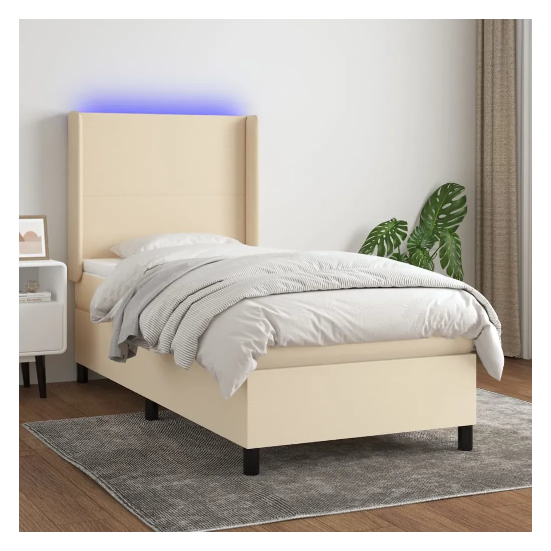 Utilisez ce sommier tapissier avec matelas et LED pour profiter d'un sommeil réparateur ! C'est le point central de votre chambre à coucher. Tissu durable : le tissu présente un aspect simple et épuré, et il est respirant et durable.Tête de lit pratique : la tête de lit est réglable en hauteur selon vos préférences. La tête de lit vous offre un excellent soutien du dos lorsque vous êtes assis dans votre lit pour lire ou regarder la télévision.Bande LED colorée : apportez de l'éclairage dans l'obscurité avec des lumières LED colorées !Matelas à ressorts ensachés : le ressort ensaché individuel intégré est connu pour sa très haute qualité tout en assurant un haut niveau de durabilité et d'adaptabilité. Il peut absorber efficacement le bruit et les chocs causés par les sauts et les rotations.Protège-matelas doux pour la peau : le protège-matelas est recouvert d'un tissu résistant et doux pour la peau, ce qui le rend souple et confortable. Remarque :Pour des raisons d'hygiène, le matelas ne peut pas être retourné si l'emballage est retiré ou ouvert.Seule la partie avec un symbole de ciseaux peut être coupée et seule la partie avec l'USB continuera à fonctionner comme avant.Chaque produit est livré avec un manuel de montage dans la boîte pour un montage facile.Ce produit est doté d'un connecteur USB, mais la source d'alimentation certifiée de USB 5V n'est pas incluse.