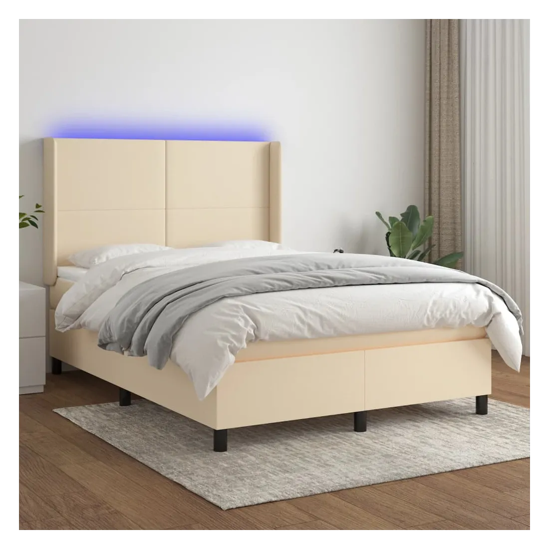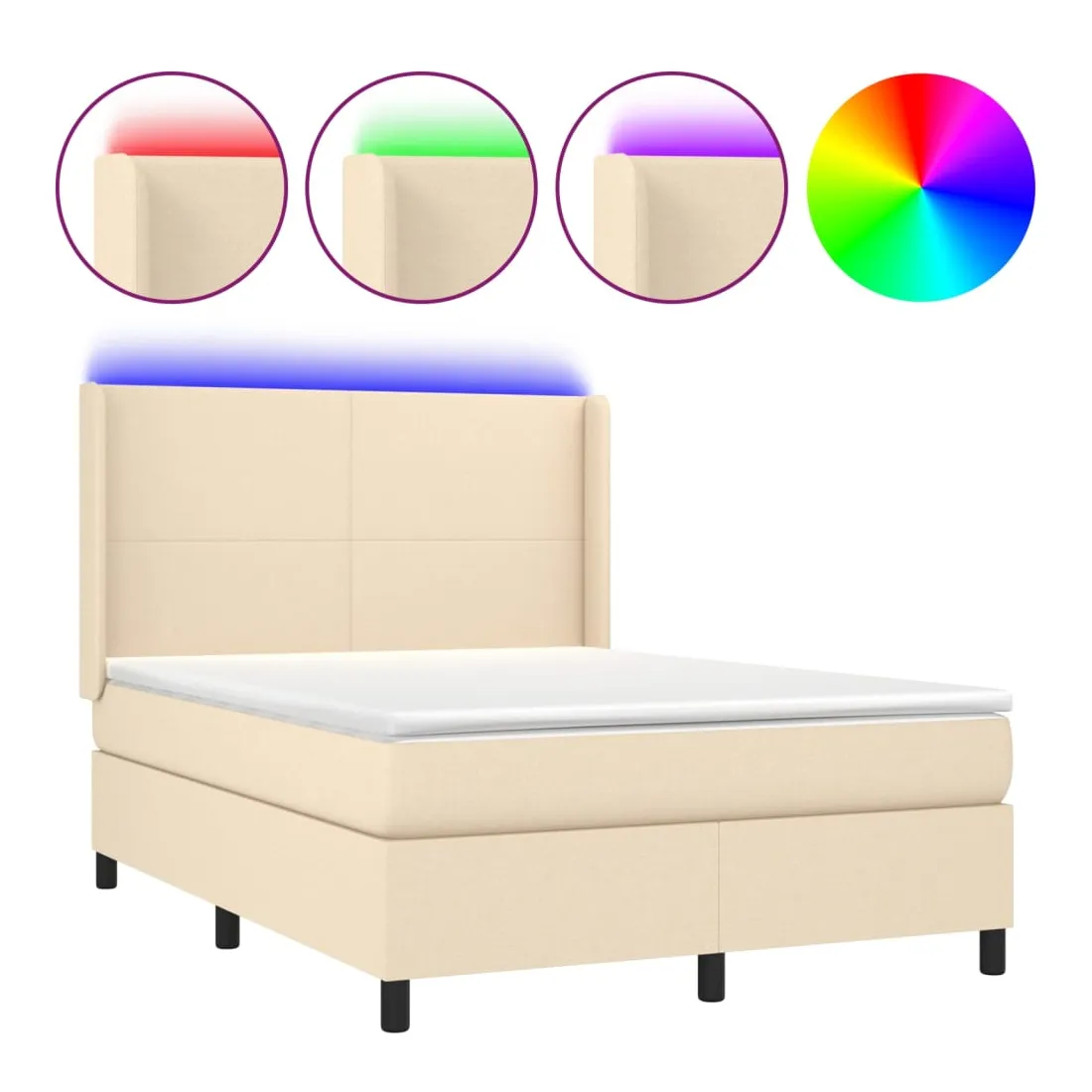 Sommier à lattes de lit matelas et LED Crème 140x200 cm Tissu