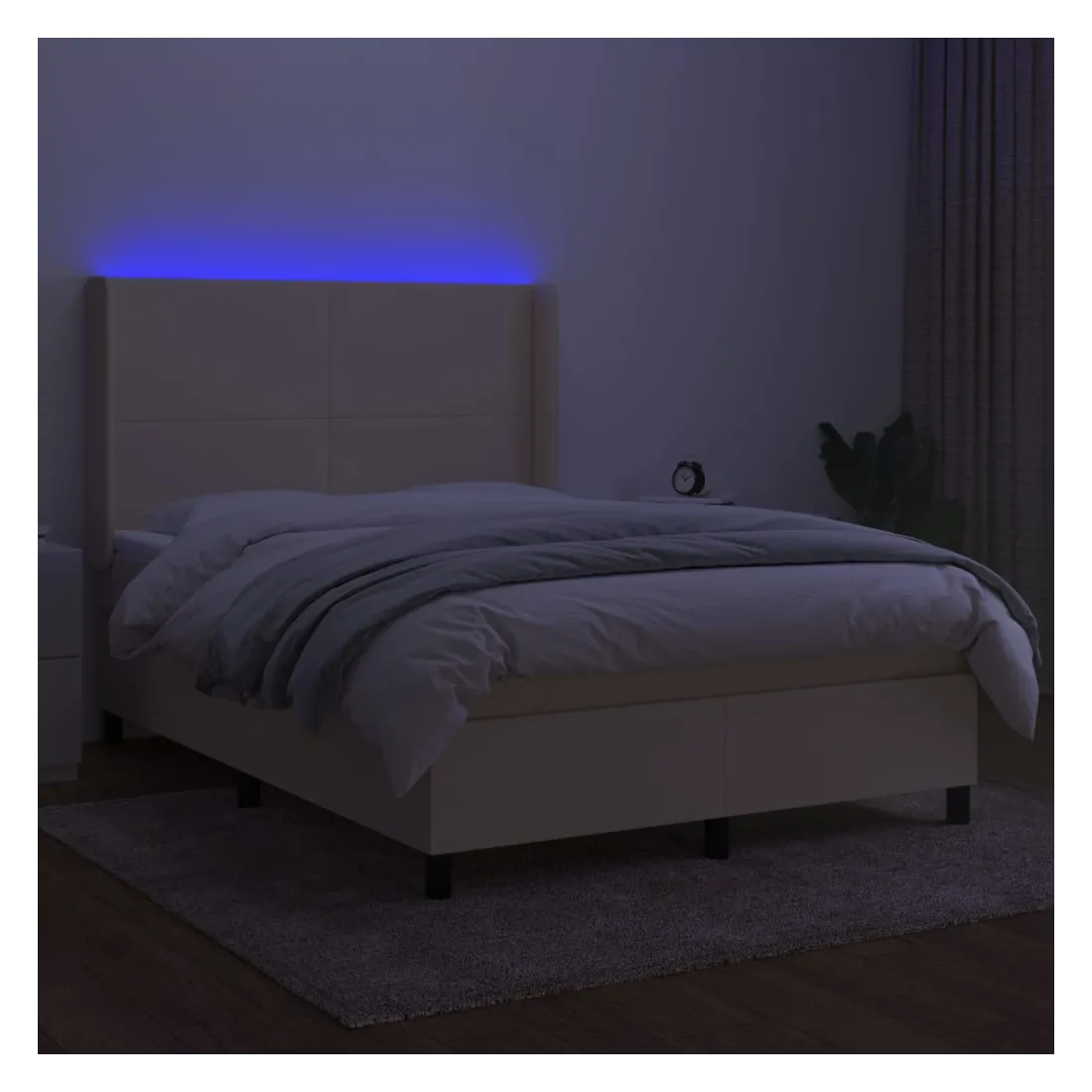 Utilisez ce sommier tapissier avec matelas et LED pour profiter d'un sommeil réparateur ! C'est le point central de votre chambre à coucher. Tissu durable : le tissu présente un aspect simple et épuré, et il est respirant et durable. Tête de lit pratique : la tête de lit est réglable en hauteur selon vos préférences. La tête de lit vous offre un excellent soutien du dos lorsque vous êtes assis dans votre lit pour lire ou regarder la télévision. Bande LED colorée : apportez de l'éclairage dans l'obscurité avec des lumières LED colorées ! Matelas à ressorts ensachés : le ressort ensaché individuel intégré est connu pour sa très haute qualité tout en assurant un haut niveau de durabilité et d'adaptabilité. Il peut absorber efficacement le bruit et les chocs causés par les sauts et les rot