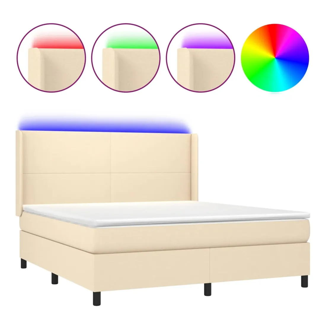 Sommier à lattes de lit matelas LED Crème 180x200 cm Tissu