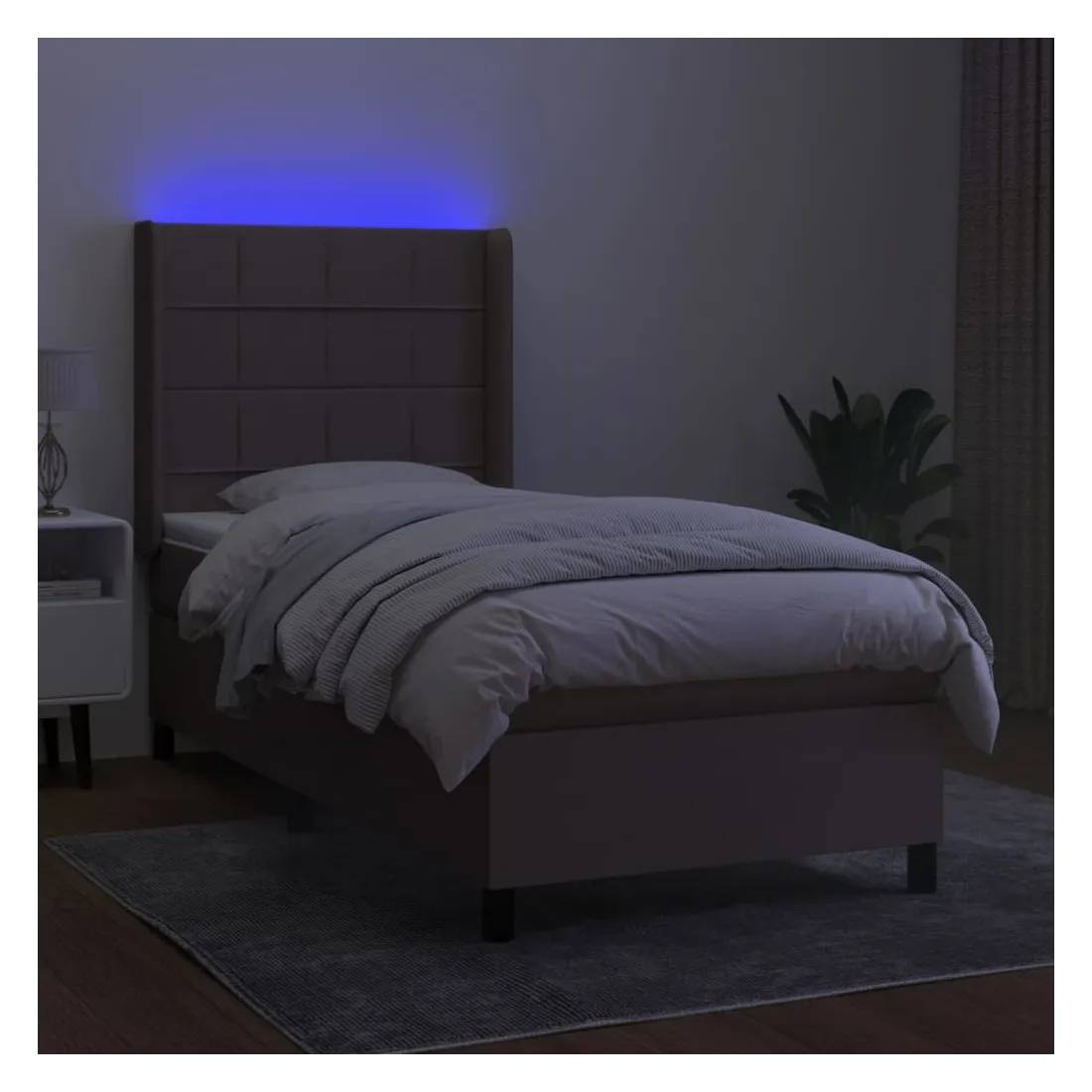 Sommier à lattes de lit matelas et LED Taupe 90x190 cm Tissu