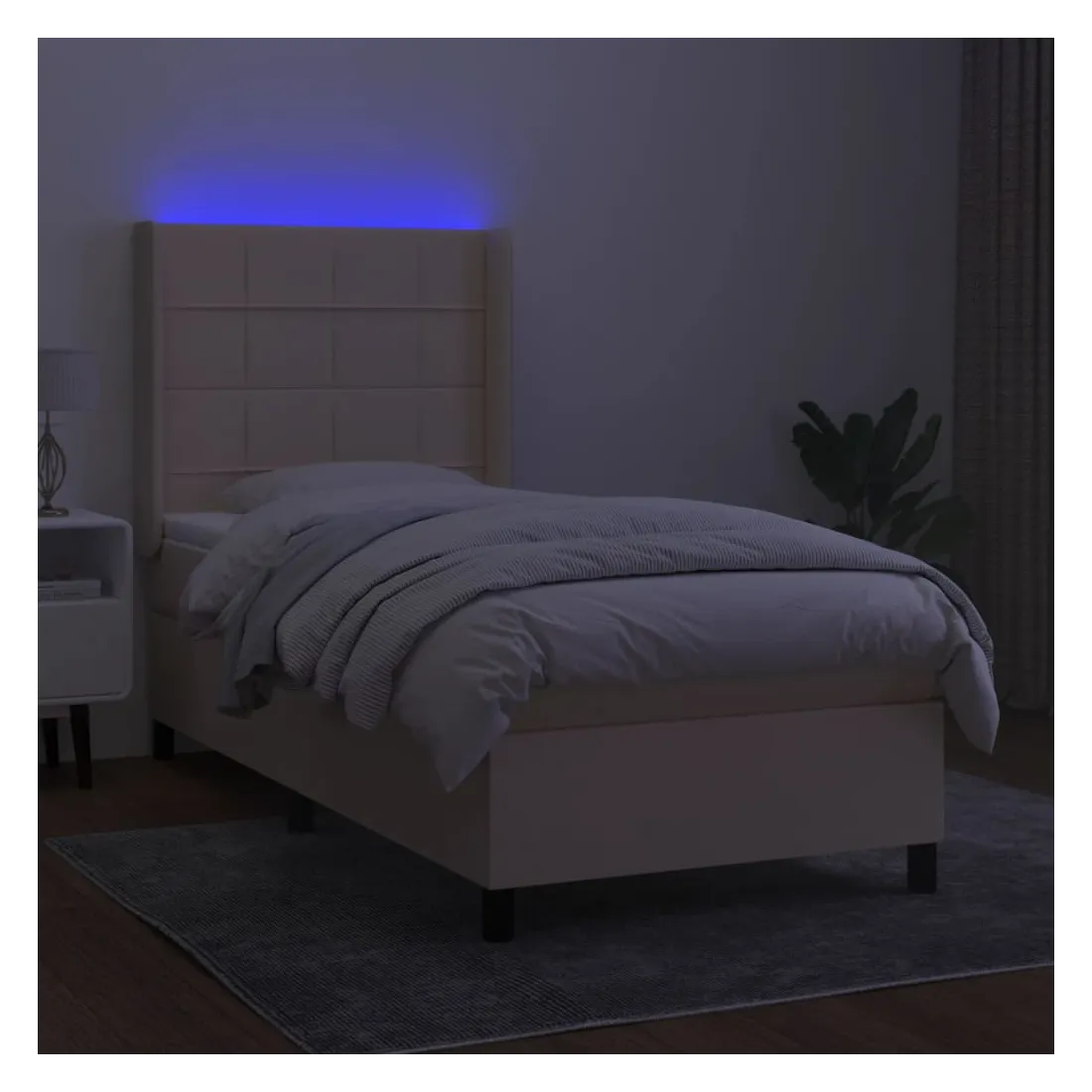 Sommier à lattes de lit matelas et LED Crème 100x200 cm Tissu