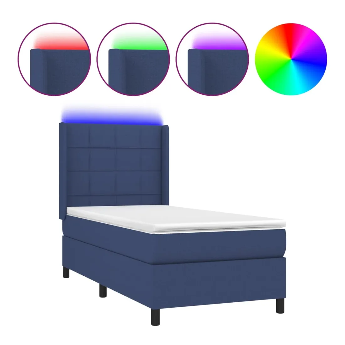 Utilisez ce sommier tapissier avec matelas et LED pour profiter d'un sommeil réparateur ! C'est le point central de votre chambre à coucher. Tissu durable : le tissu présente un aspect simple et épuré, et il est respirant et durable.Tête de lit pratique : la tête de lit est réglable en hauteur selon vos préférences. La tête de lit vous offre un excellent soutien du dos lorsque vous êtes assis dans votre lit pour lire ou regarder la télévision.Bande LED colorée : apportez de l'éclairage dans l'obscurité avec des lumières LED colorées !Matelas à ressorts ensachés : le ressort ensaché individuel intégré est connu pour sa très haute qualité tout en assurant un haut niveau de durabilité et d'adaptabilité. Il peut absorber efficacement le bruit et les chocs causés par les sauts et les rotations.Protège-matelas doux pour la peau : le protège-matelas est recouvert d'un tissu résistant et doux pour la peau, ce qui le rend souple et confortable. Remarque :Pour des raisons d'hygiène, le matelas ne peut pas être retourné si l'emballage est retiré ou ouvert.Seule la partie avec un symbole de ciseaux peut être coupée et seule la partie avec l'USB continuera à fonctionner comme avant.Chaque produit est livré avec un manuel de montage dans la boîte pour un montage facile.Ce produit est doté d'un connecteur USB, mais la source d'alimentation certifiée de USB 5V n'est pas incluse.