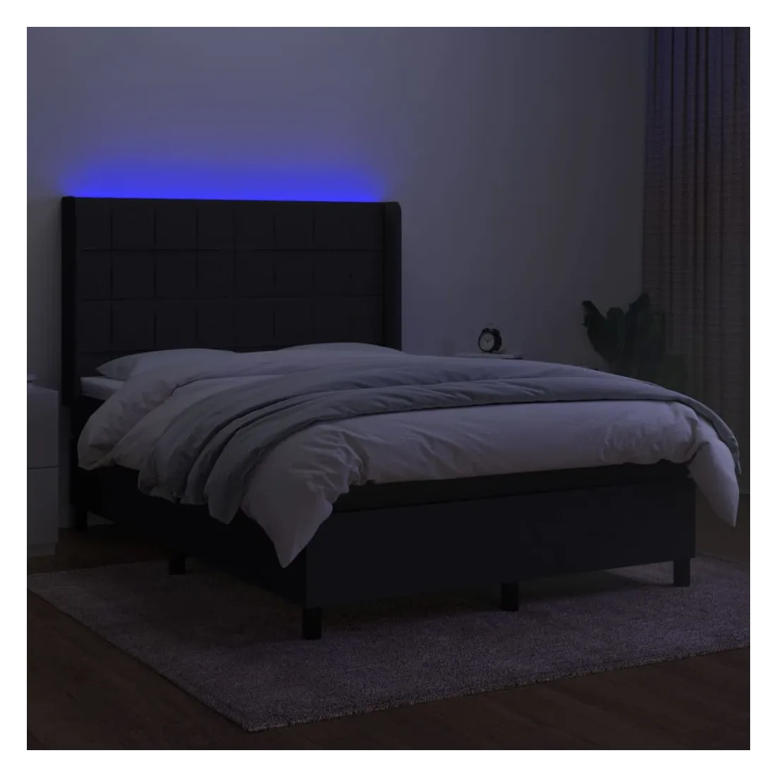 Utilisez ce sommier tapissier avec matelas et LED pour profiter d'un sommeil réparateur ! C'est le point central de votre chambre à coucher. Tissu durable : le tissu présente un aspect simple et épuré, et il est respirant et durable.Tête de lit pratique : la tête de lit est réglable en hauteur selon vos préférences. La tête de lit vous offre un excellent soutien du dos lorsque vous êtes assis dans votre lit pour lire ou regarder la télévision.Bande LED colorée : apportez de l'éclairage dans l'obscurité avec des lumières LED colorées !Matelas à ressorts ensachés : le ressort ensaché individuel intégré est connu pour sa très haute qualité tout en assurant un haut niveau de durabilité et d'adaptabilité. Il peut absorber efficacement le bruit et les chocs causés par les sauts et les rotations.Protège-matelas doux pour la peau : le protège-matelas est recouvert d'un tissu résistant et doux pour la peau, ce qui le rend souple et confortable. Remarque :Pour des raisons d'hygiène, le matelas ne peut pas être retourné si l'emballage est retiré ou ouvert.Seule la partie avec un symbole de ciseaux peut être coupée et seule la partie avec l'USB continuera à fonctionner comme avant.Chaque produit est livré avec un manuel de montage dans la boîte pour un montage facile.Ce produit est doté d'un connecteur USB, mais la source d'alimentation certifiée de USB 5V n'est pas incluse.
