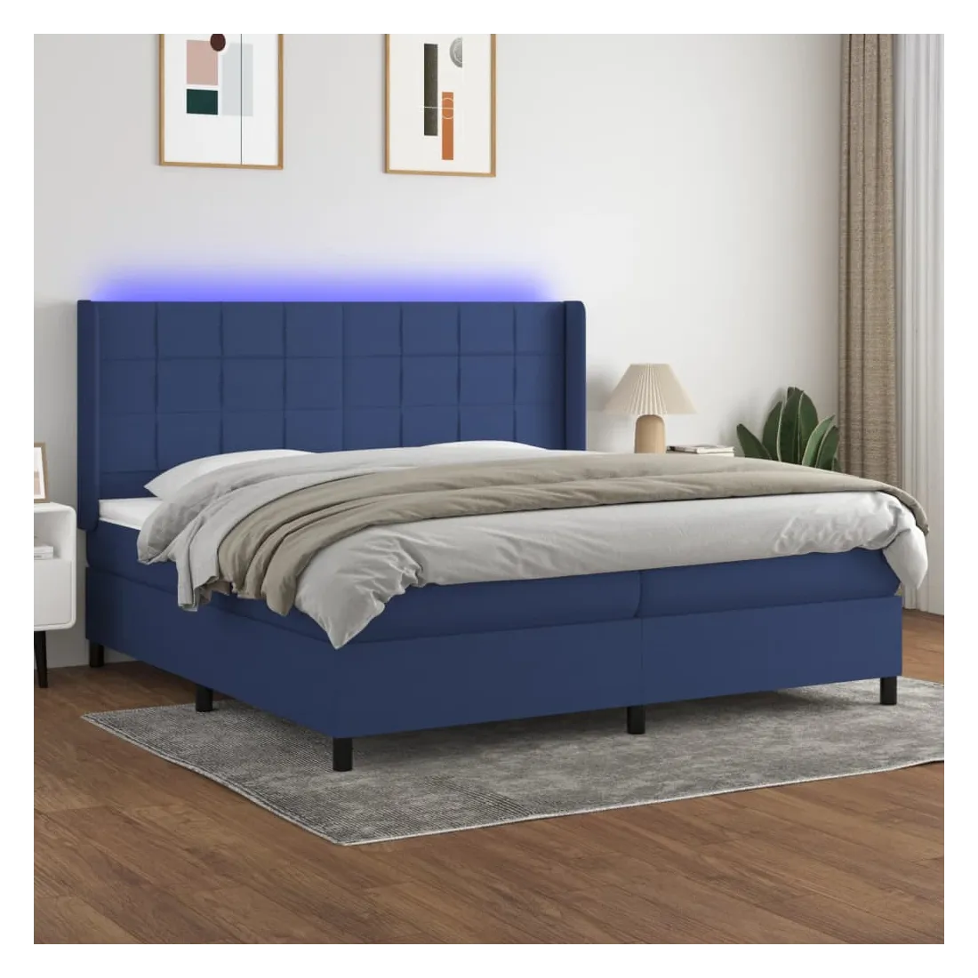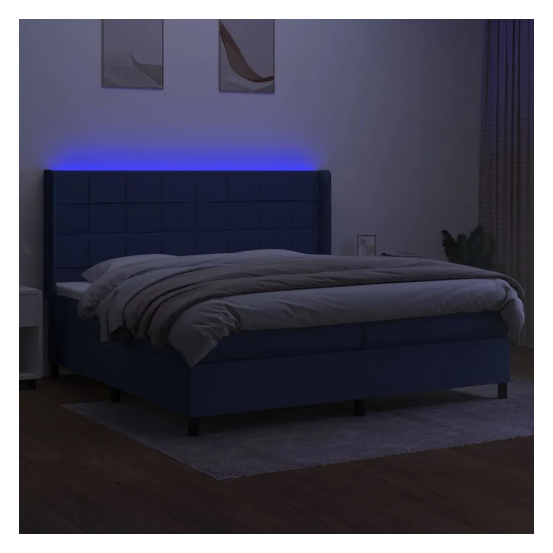 Sommier à lattes de lit et matelas et LED Bleu 200x200 cm Tissu