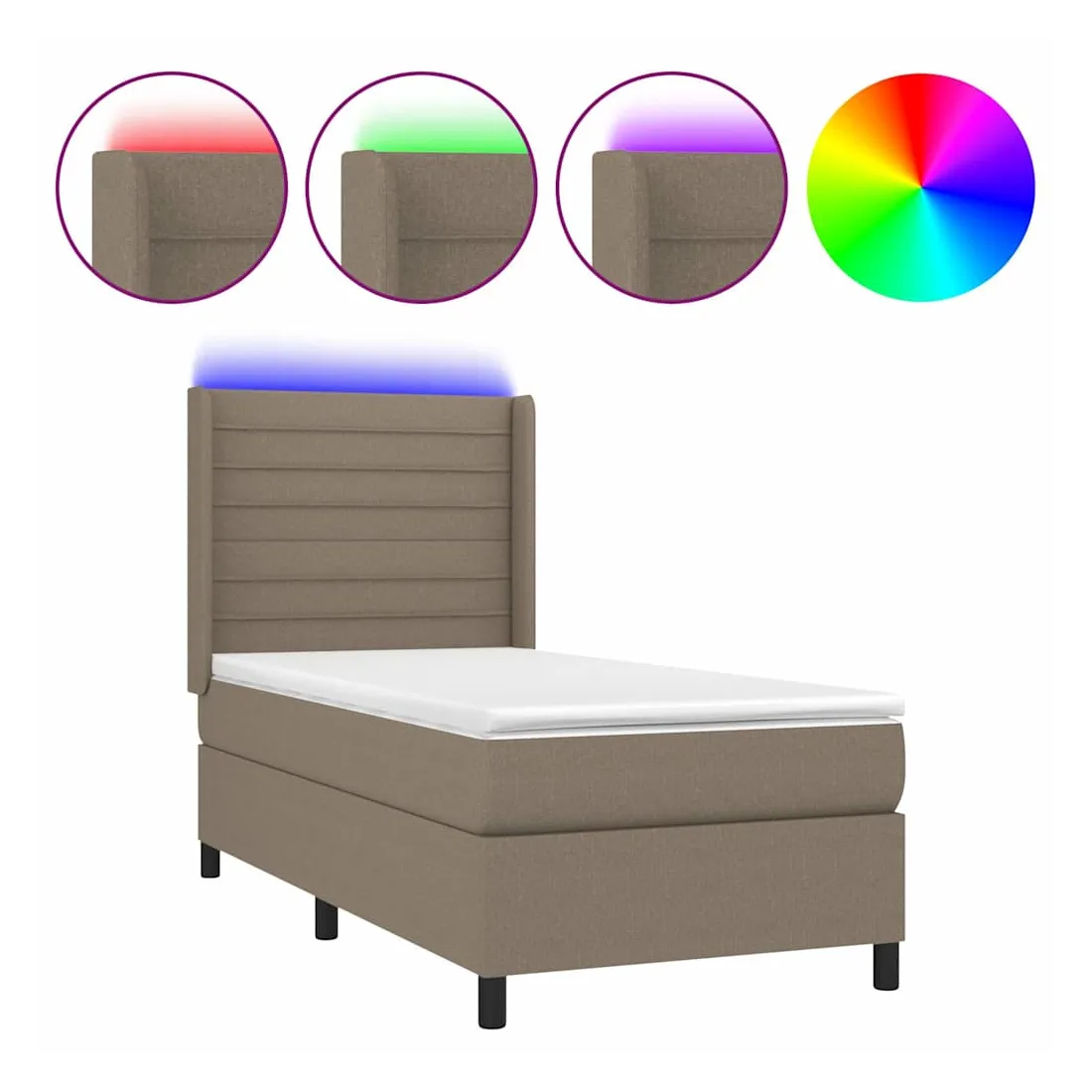 Utilisez ce sommier tapissier avec matelas et LED pour profiter d'un sommeil réparateur ! C'est le point central de votre chambre à coucher. Tissu durable : le tissu présente un aspect simple et épuré, et il est respirant et durable.Tête de lit pratique : la tête de lit est réglable en hauteur selon vos préférences. La tête de lit vous offre un excellent soutien du dos lorsque vous êtes assis dans votre lit pour lire ou regarder la télévision.Bande LED colorée : apportez de l'éclairage dans l'obscurité avec des lumières LED colorées !Matelas à ressorts ensachés : le ressort ensaché individuel intégré est connu pour sa très haute qualité tout en assurant un haut niveau de durabilité et d'adaptabilité. Il peut absorber efficacement le bruit et les chocs causés par les sauts et les rotations.Protège-matelas doux pour la peau : le protège-matelas est recouvert d'un tissu résistant et doux pour la peau, ce qui le rend souple et confortable. Remarque :Pour des raisons d'hygiène, le matelas ne peut pas être retourné si l'emballage est retiré ou ouvert.Seule la partie avec un symbole de ciseaux peut être coupée et seule la partie avec l'USB continuera à fonctionner comme avant.Chaque produit est livré avec un manuel de montage dans la boîte pour un montage facile.Ce produit est doté d'un connecteur USB, mais la source d'alimentation certifiée de USB 5V n'est pas incluse.