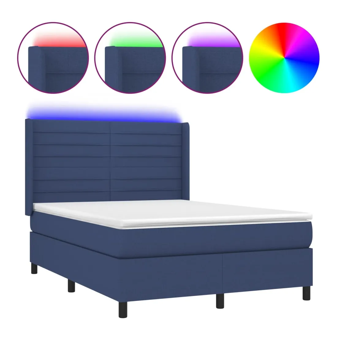 Utilisez ce sommier tapissier avec matelas et LED pour profiter d'un sommeil réparateur ! C'est le point central de votre chambre à coucher. Tissu durable : le tissu présente un aspect simple et épuré, et il est respirant et durable.Tête de lit pratique : la tête de lit est réglable en hauteur selon vos préférences. La tête de lit vous offre un excellent soutien du dos lorsque vous êtes assis dans votre lit pour lire ou regarder la télévision.Bande LED colorée : apportez de l'éclairage dans l'obscurité avec des lumières LED colorées !Matelas à ressorts ensachés : le ressort ensaché individuel intégré est connu pour sa très haute qualité tout en assurant un haut niveau de durabilité et d'adaptabilité. Il peut absorber efficacement le bruit et les chocs causés par les sauts et les rotations.Protège-matelas doux pour la peau : le protège-matelas est recouvert d'un tissu résistant et doux pour la peau, ce qui le rend souple et confortable. Remarque :Pour des raisons d'hygiène, le matelas ne peut pas être retourné si l'emballage est retiré ou ouvert.Seule la partie avec un symbole de ciseaux peut être coupée et seule la partie avec l'USB continuera à fonctionner comme avant.Chaque produit est livré avec un manuel de montage dans la boîte pour un montage facile.Ce produit est doté d'un connecteur USB, mais la source d'alimentation certifiée de USB 5V n'est pas incluse.