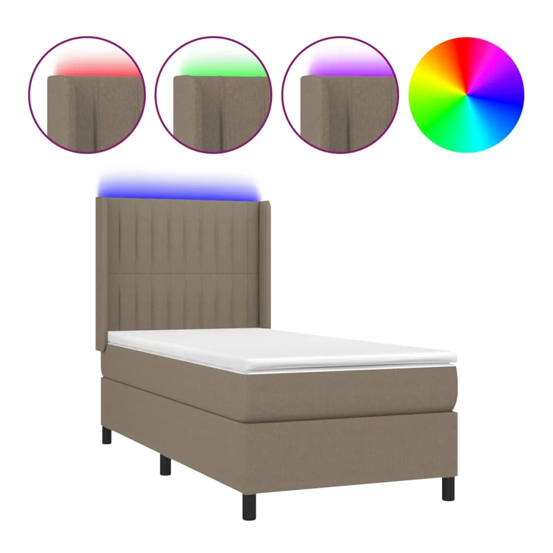Sommier à lattes de lit matelas et LED Taupe 80x200cm Tissu