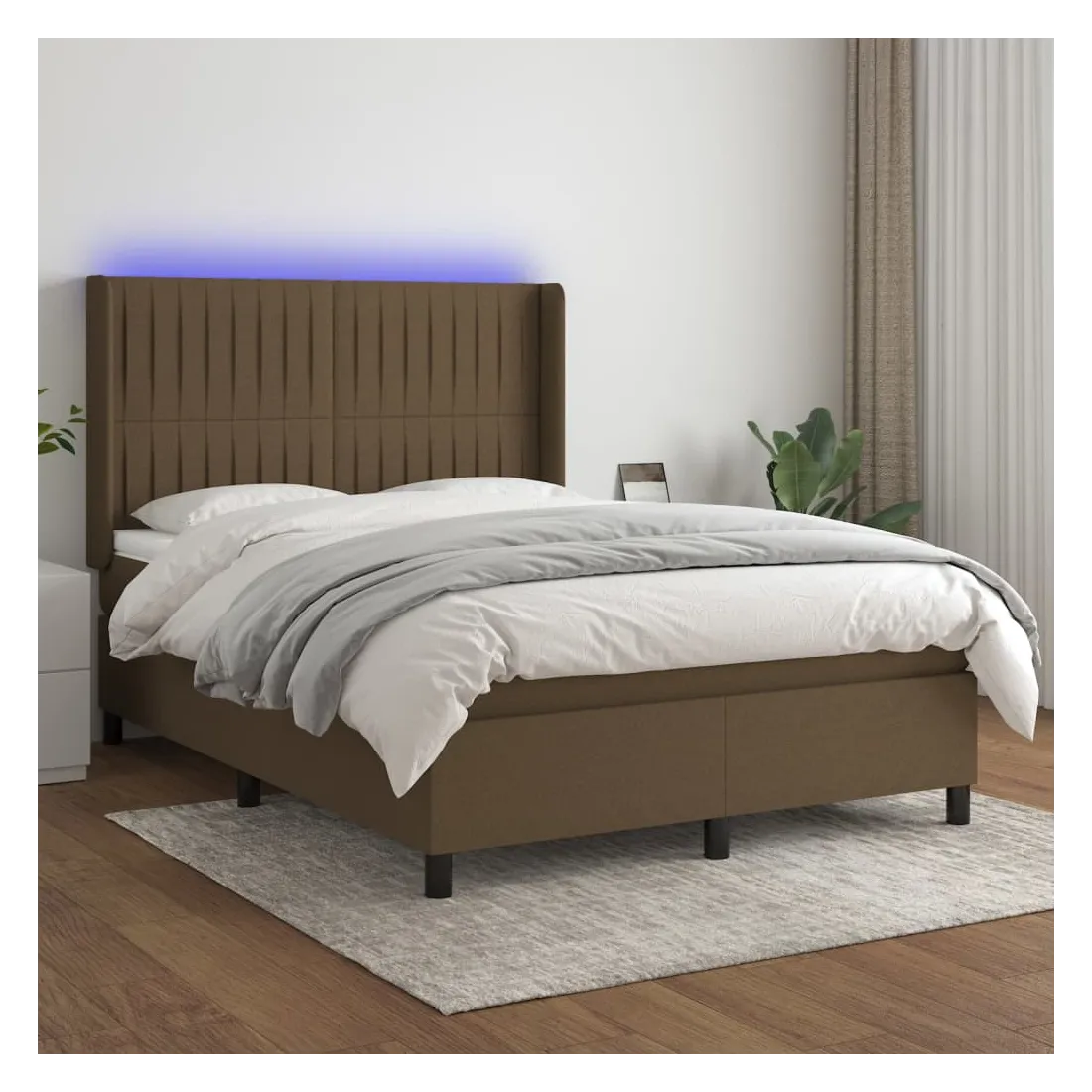 Sommier à lattes de lit matelas et LED Marron foncé 140x200 cm