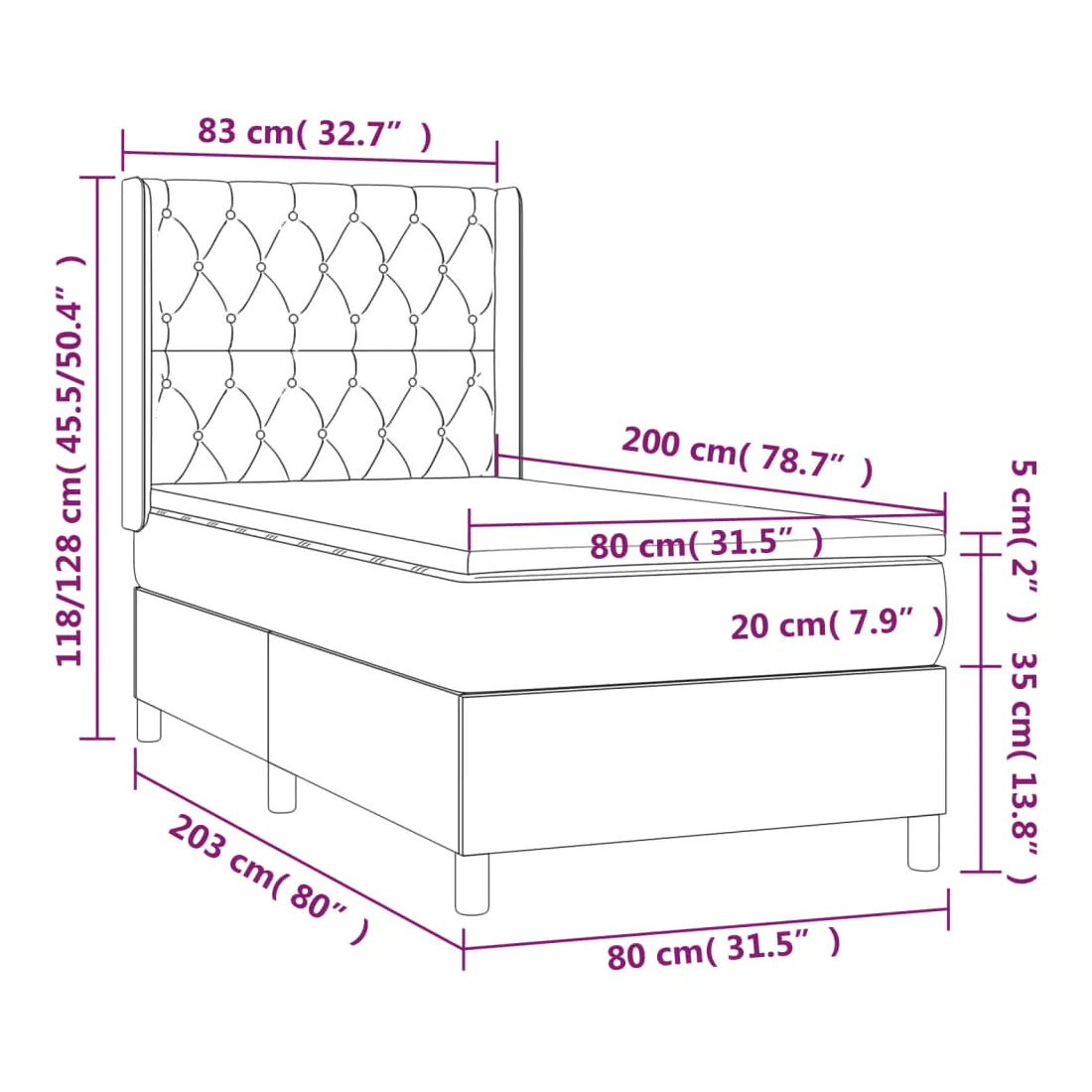 • Dimensions totales : 203 x 83 x 118/128 cm (L x l x H)
