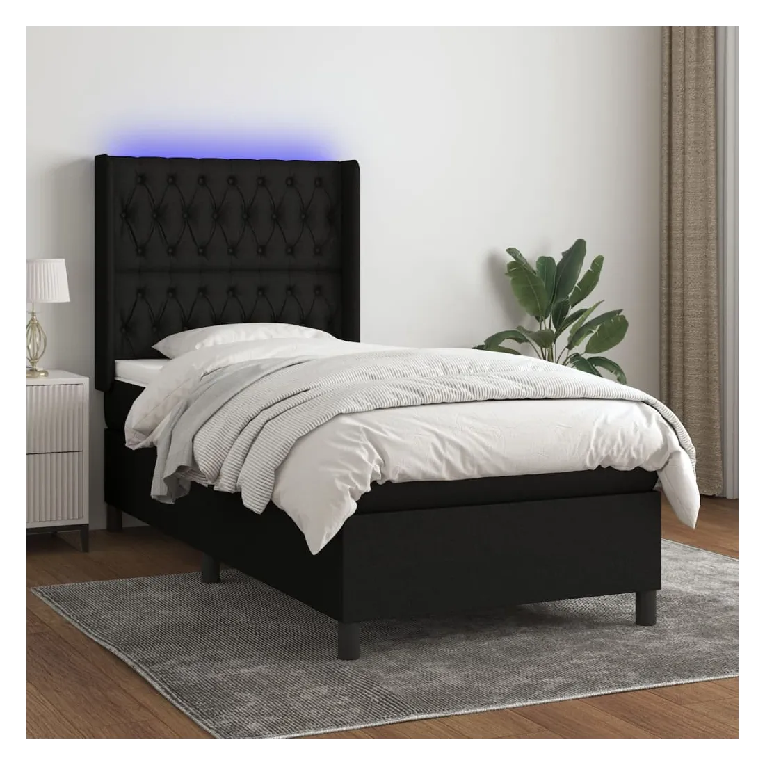 Utilisez ce sommier tapissier avec matelas et LED pour profiter d'un sommeil réparateur ! C'est le point central de votre chambre à coucher. Tissu durable : le tissu présente un aspect simple et épuré, et il est respirant et durable.Tête de lit pratique : la tête de lit est réglable en hauteur selon vos préférences. La tête de lit vous offre un excellent soutien du dos lorsque vous êtes assis dans votre lit pour lire ou regarder la télévision.Bande LED colorée : apportez de l'éclairage dans l'obscurité avec des lumières LED colorées !Matelas à ressorts ensachés : le ressort ensaché individuel intégré est connu pour sa très haute qualité tout en assurant un haut niveau de durabilité et d'adaptabilité. Il peut absorber efficacement le bruit et les chocs causés par les sauts et les rotations.Protège-matelas doux pour la peau : le protège-matelas est recouvert d'un tissu résistant et doux pour la peau, ce qui le rend souple et confortable. Remarque :Pour des raisons d'hygiène, le matelas ne peut pas être retourné si l'emballage est retiré ou ouvert.Seule la partie avec un symbole de ciseaux peut être coupée et seule la partie avec l'USB continuera à fonctionner comme avant.Chaque produit est livré avec un manuel de montage dans la boîte pour un montage facile.Ce produit est doté d'un connecteur USB, mais la source d'alimentation certifiée de USB 5V n'est pas incluse.