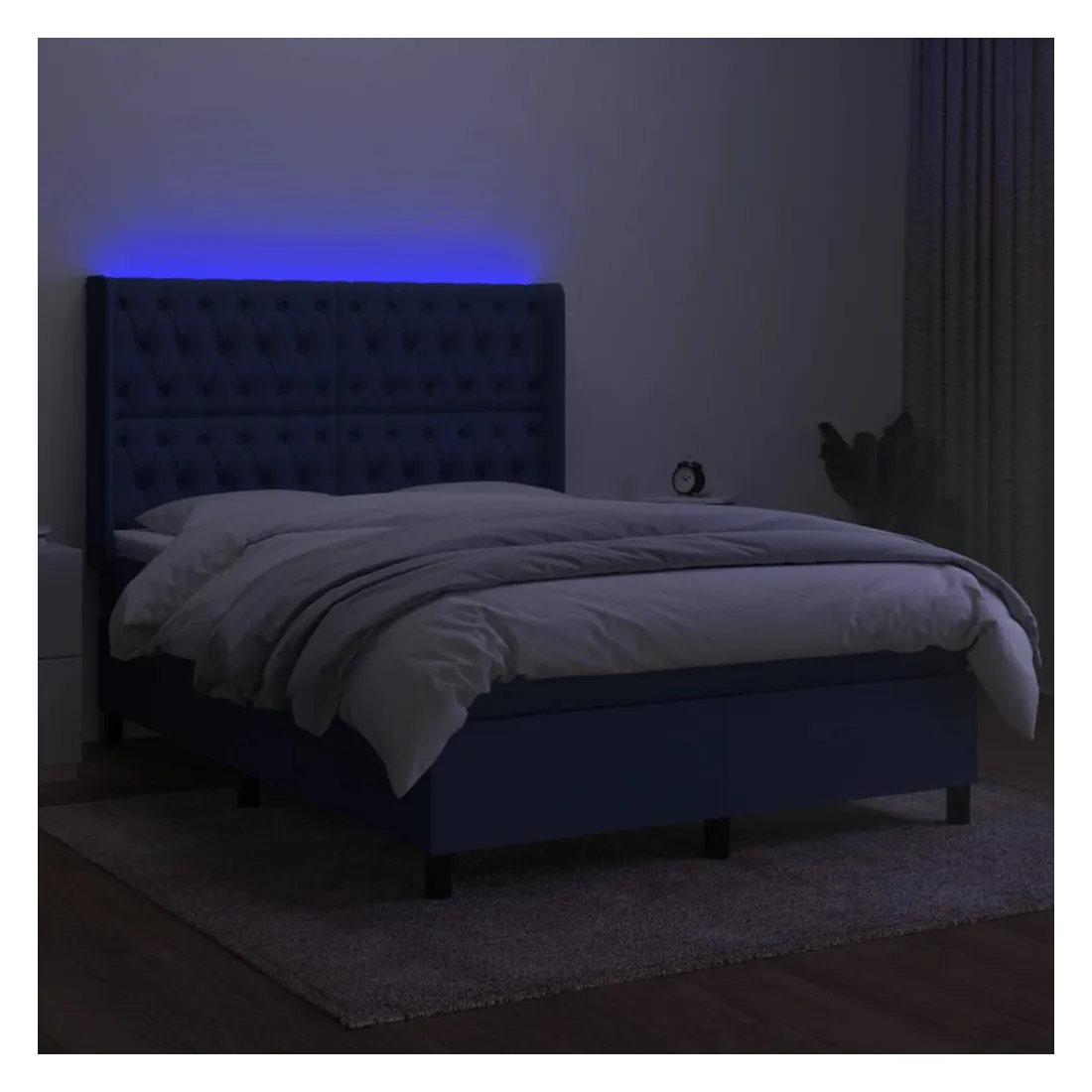 Sommier à lattes de lit matelas et LED Bleu 140x190 cm Tissu