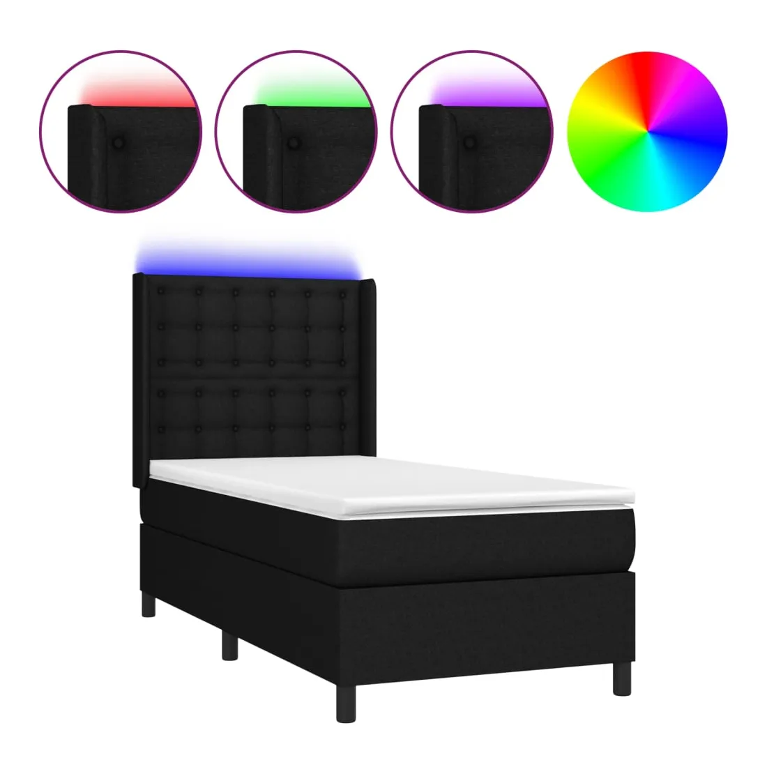 Sommier à lattes de lit matelas et LED Noir 90x200 cm Tissu