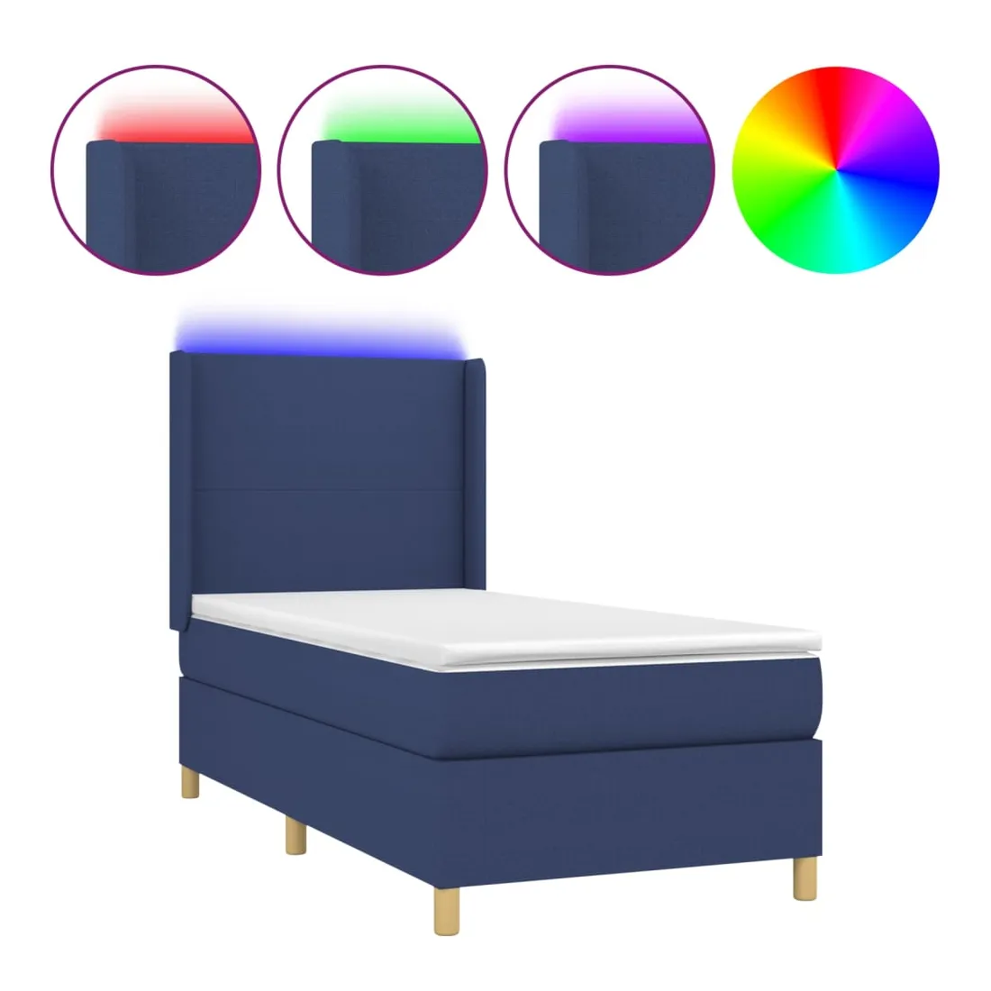 Sommier à lattes de lit matelas et LED Bleu 90x190 cm Tissu