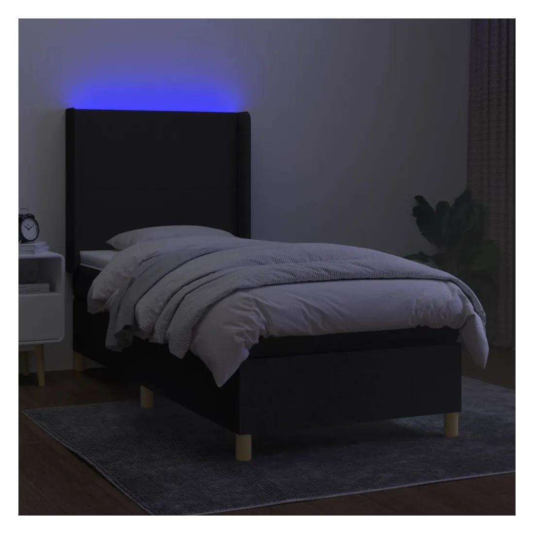 Utilisez ce sommier tapissier avec matelas et LED pour profiter d'un sommeil réparateur ! C'est le point central de votre chambre à coucher. Tissu durable : le tissu présente un aspect simple et épuré, et il est respirant et durable.Tête de lit pratique : la tête de lit est réglable en hauteur selon vos préférences. La tête de lit vous offre un excellent soutien du dos lorsque vous êtes assis dans votre lit pour lire ou regarder la télévision.Bande LED colorée : apportez de l'éclairage dans l'obscurité avec des lumières LED colorées !Matelas à ressorts ensachés : le ressort ensaché individuel intégré est connu pour sa très haute qualité tout en assurant un haut niveau de durabilité et d'adaptabilité. Il peut absorber efficacement le bruit et les chocs causés par les sauts et les rotations.Protège-matelas doux pour la peau : le protège-matelas est recouvert d'un tissu résistant et doux pour la peau, ce qui le rend souple et confortable. Remarque :Pour des raisons d'hygiène, le matelas ne peut pas être retourné si l'emballage est retiré ou ouvert.Seule la partie avec un symbole de ciseaux peut être coupée et seule la partie avec l'USB continuera à fonctionner comme avant.Chaque produit est livré avec un manuel de montage dans la boîte pour un montage facile.Ce produit est doté d'un connecteur USB, mais la source d'alimentation certifiée de USB 5V n'est pas incluse.