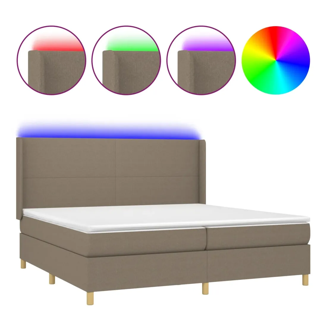 Utilisez ce sommier tapissier avec matelas et LED pour profiter d'un sommeil réparateur ! C'est le point central de votre chambre à coucher. Tissu durable : le tissu présente un aspect simple et épuré, et il est respirant et durable.Tête de lit pratique : la tête de lit est réglable en hauteur selon vos préférences. La tête de lit vous offre un excellent soutien du dos lorsque vous êtes assis dans votre lit pour lire ou regarder la télévision.Bande LED colorée : apportez de l'éclairage dans l'obscurité avec des lumières LED colorées !Matelas à ressorts ensachés : le ressort ensaché individuel intégré est connu pour sa très haute qualité tout en assurant un haut niveau de durabilité et d'adaptabilité. Il peut absorber efficacement le bruit et les chocs causés par les sauts et les rotations.Protège-matelas doux pour la peau : le protège-matelas est recouvert d'un tissu résistant et doux pour la peau, ce qui le rend souple et confortable. Remarque :Pour des raisons d'hygiène, le matelas ne peut pas être retourné si l'emballage est retiré ou ouvert.Seule la partie avec un symbole de ciseaux peut être coupée et seule la partie avec l'USB continuera à fonctionner comme avant.Chaque produit est livré avec un manuel de montage dans la boîte pour un montage facile.Ce produit est doté d'un connecteur USB, mais la source d'alimentation certifiée de USB 5V n'est pas incluse.
