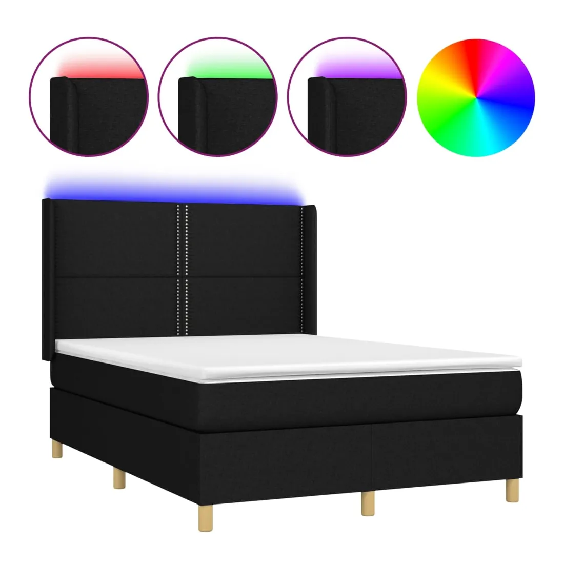 Utilisez ce sommier tapissier avec matelas et LED pour profiter d'un sommeil réparateur ! C'est le point central de votre chambre à coucher. Tissu durable : le tissu présente un aspect simple et épuré, et il est respirant et durable.Tête de lit pratique : la tête de lit est réglable en hauteur selon vos préférences. La tête de lit vous offre un excellent soutien du dos lorsque vous êtes assis dans votre lit pour lire ou regarder la télévision.Bande LED colorée : apportez de l'éclairage dans l'obscurité avec des lumières LED colorées !Matelas à ressorts ensachés : le ressort ensaché individuel intégré est connu pour sa très haute qualité tout en assurant un haut niveau de durabilité et d'adaptabilité. Il peut absorber efficacement le bruit et les chocs causés par les sauts et les rotations.Protège-matelas doux pour la peau : le protège-matelas est recouvert d'un tissu résistant et doux pour la peau, ce qui le rend souple et confortable. Remarque :Pour des raisons d'hygiène, le matelas ne peut pas être retourné si l'emballage est retiré ou ouvert.Seule la partie avec un symbole de ciseaux peut être coupée et seule la partie avec l'USB continuera à fonctionner comme avant.Chaque produit est livré avec un manuel de montage dans la boîte pour un montage facile.Ce produit est doté d'un connecteur USB, mais la source d'alimentation certifiée de USB 5V n'est pas incluse.