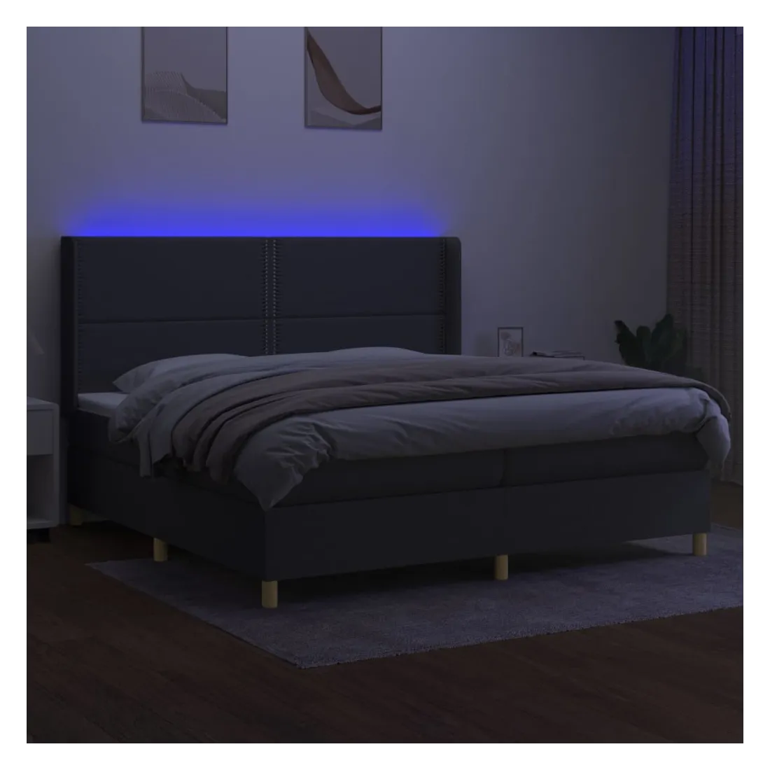 Utilisez ce sommier tapissier avec matelas et LED pour profiter d'un sommeil réparateur ! C'est le point central de votre chambre à coucher. Tissu durable : le tissu présente un aspect simple et épuré, et il est respirant et durable. Tête de lit pratique : la tête de lit est réglable en hauteur selon vos préférences. La tête de lit vous offre un excellent soutien du dos lorsque vous êtes assis dans votre lit pour lire ou regarder la télévision. Bande LED colorée : apportez de l'éclairage dans l'obscurité avec des lumières LED colorées ! Matelas à ressorts ensachés : le ressort ensaché individuel intégré est connu pour sa très haute qualité tout en assurant un haut niveau de durabilité et d'adaptabilité. Il peut absorber efficacement le bruit et les chocs causés par les sauts et les rot