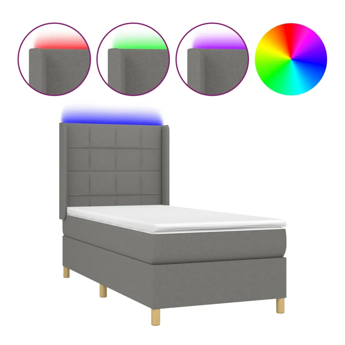 Sommier à lattes de lit matelas LED Gris foncé 90x200cm Tissu