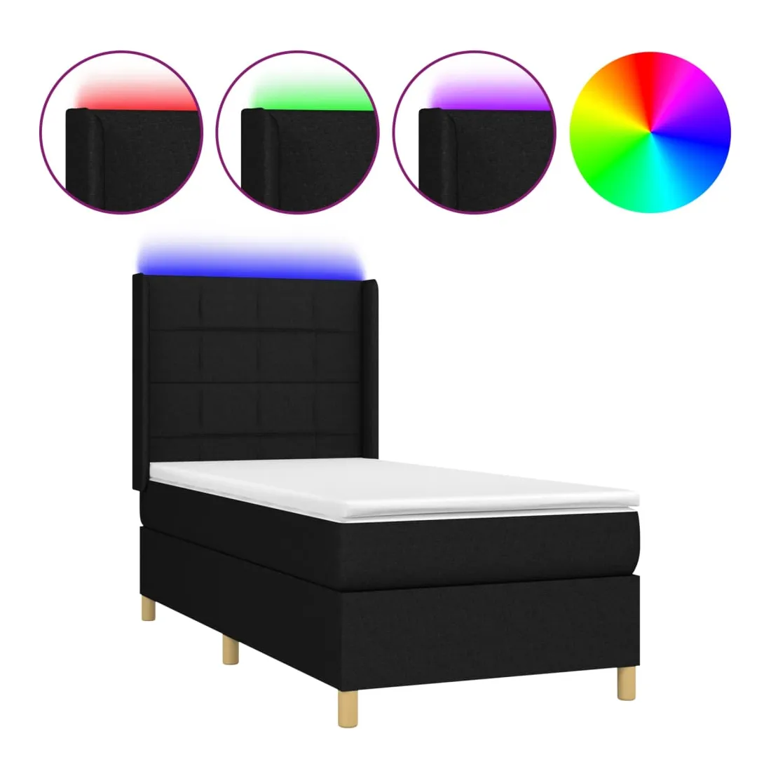 Sommier à lattes de lit matelas et LED Noir 100x200 cm Tissu