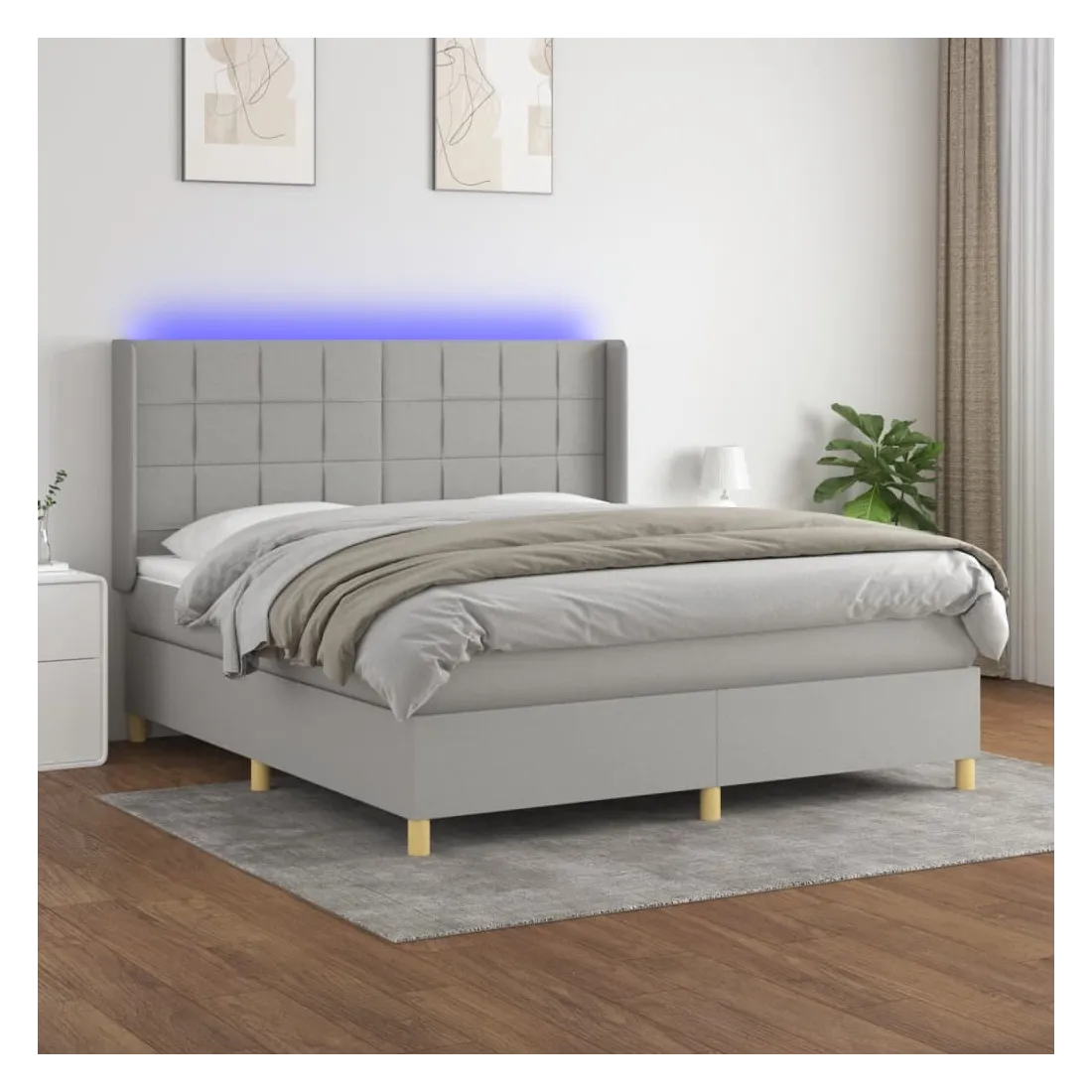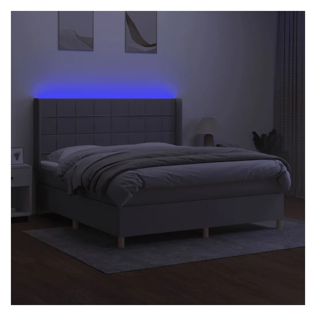 Utilisez ce sommier tapissier avec matelas et LED pour profiter d'un sommeil réparateur ! C'est le point central de votre chambre à coucher. Tissu durable : le tissu présente un aspect simple et épuré, et il est respirant et durable. Tête de lit pratique : la tête de lit est réglable en hauteur selon vos préférences. La tête de lit vous offre un excellent soutien du dos lorsque vous êtes assis dans votre lit pour lire ou regarder la télévision. Bande LED colorée : apportez de l'éclairage dans l'obscurité avec des lumières LED colorées ! Matelas à ressorts ensachés : le ressort ensaché individuel intégré est connu pour sa très haute qualité tout en assurant un haut niveau de durabilité et d'adaptabilité. Il peut absorber efficacement le bruit et les chocs causés par les sauts et les rot