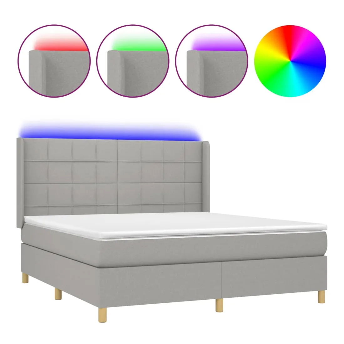 Sommier à lattes de lit matelas LED Gris clair 160x200 cm Tissu