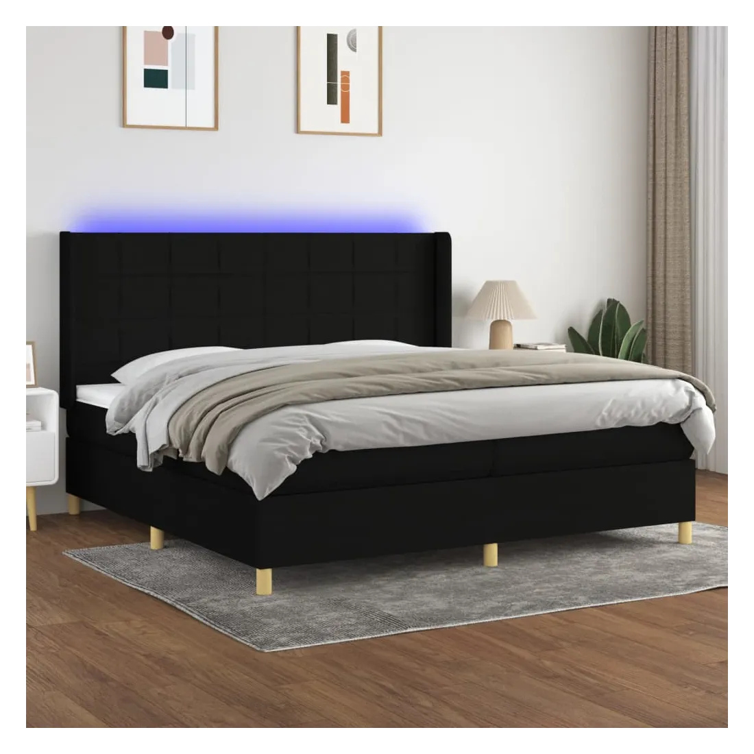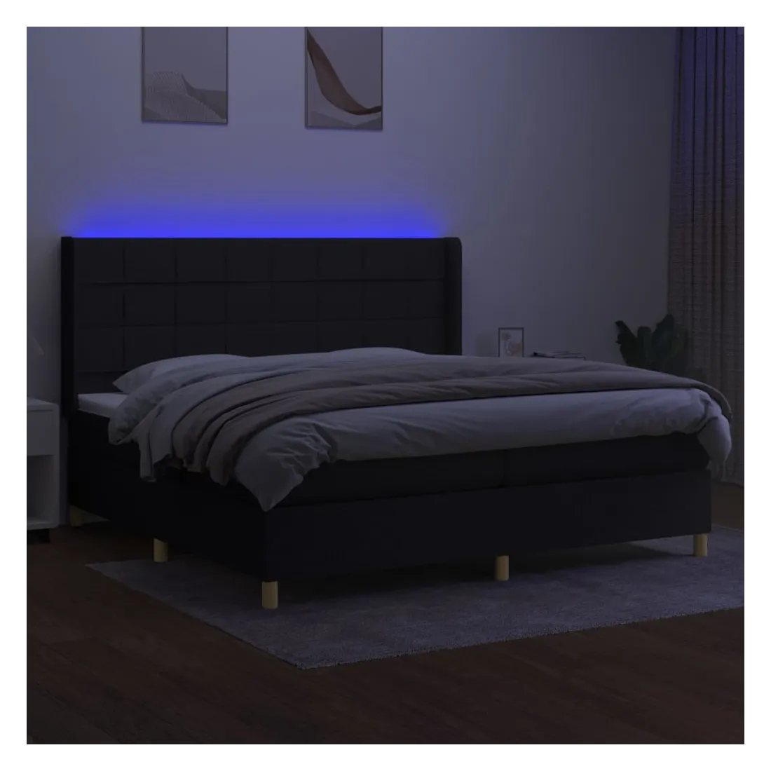 Utilisez ce sommier tapissier avec matelas et LED pour profiter d'un sommeil réparateur ! C'est le point central de votre chambre à coucher. Tissu durable : le tissu présente un aspect simple et épuré, et il est respirant et durable.Tête de lit pratique : la tête de lit est réglable en hauteur selon vos préférences. La tête de lit vous offre un excellent soutien du dos lorsque vous êtes assis dans votre lit pour lire ou regarder la télévision.Bande LED colorée : apportez de l'éclairage dans l'obscurité avec des lumières LED colorées !Matelas à ressorts ensachés : le ressort ensaché individuel intégré est connu pour sa très haute qualité tout en assurant un haut niveau de durabilité et d'adaptabilité. Il peut absorber efficacement le bruit et les chocs causés par les sauts et les rotations.Protège-matelas doux pour la peau : le protège-matelas est recouvert d'un tissu résistant et doux pour la peau, ce qui le rend souple et confortable. Remarque :Pour des raisons d'hygiène, le matelas ne peut pas être retourné si l'emballage est retiré ou ouvert.Seule la partie avec un symbole de ciseaux peut être coupée et seule la partie avec l'USB continuera à fonctionner comme avant.Chaque produit est livré avec un manuel de montage dans la boîte pour un montage facile.Ce produit est doté d'un connecteur USB, mais la source d'alimentation certifiée de USB 5V n'est pas incluse.