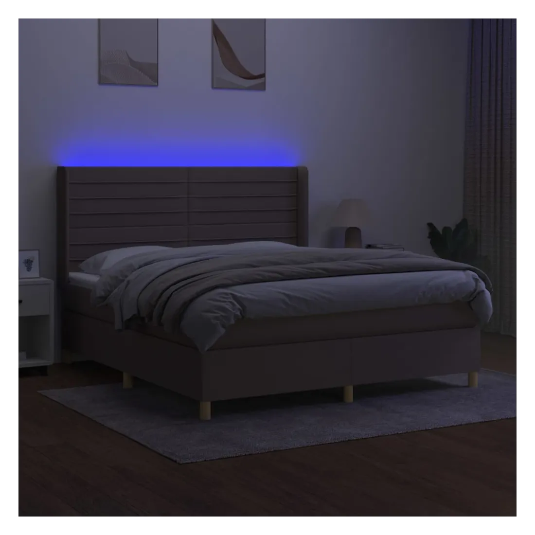 Sommier à lattes de lit matelas et LED Taupe 180x200 cm Tissu