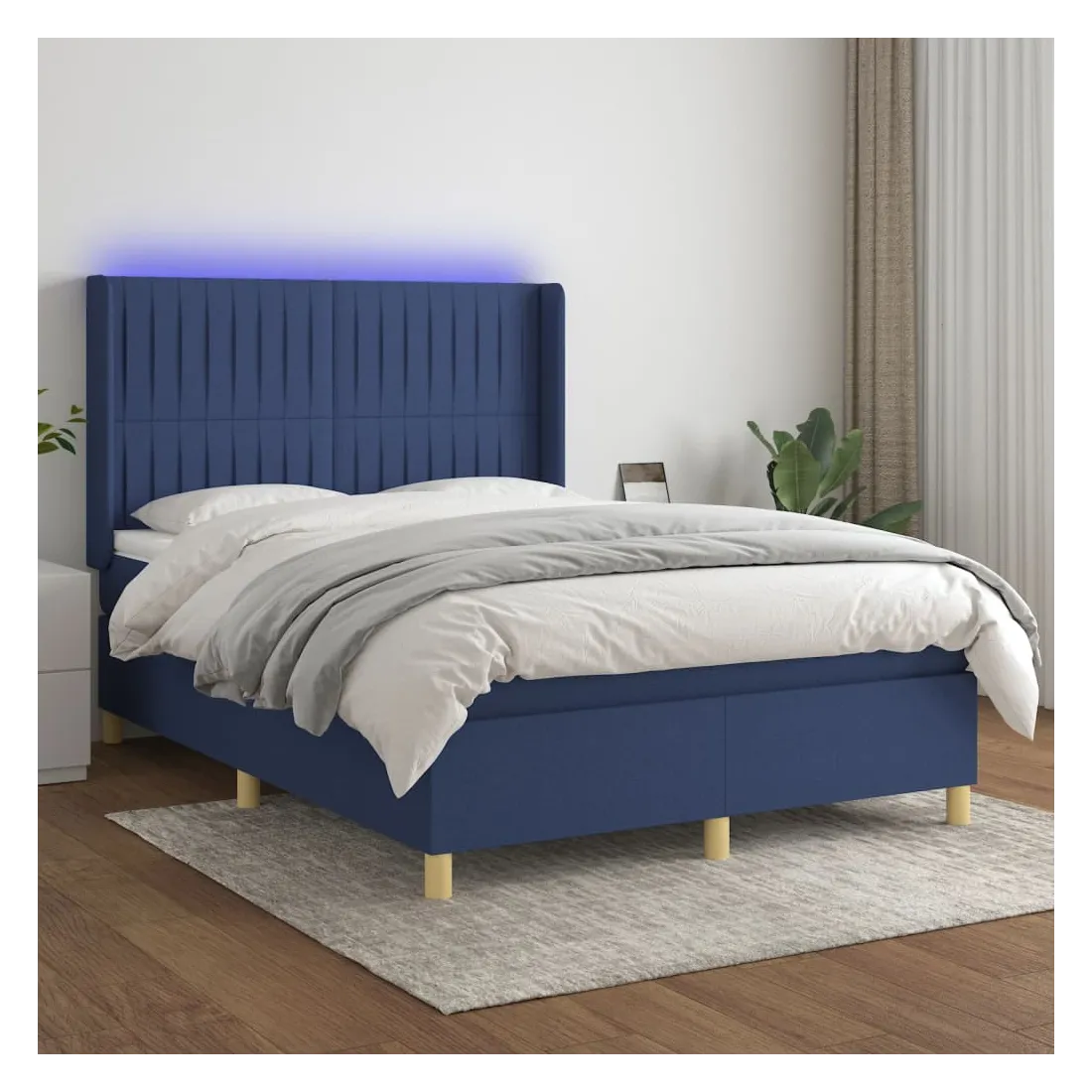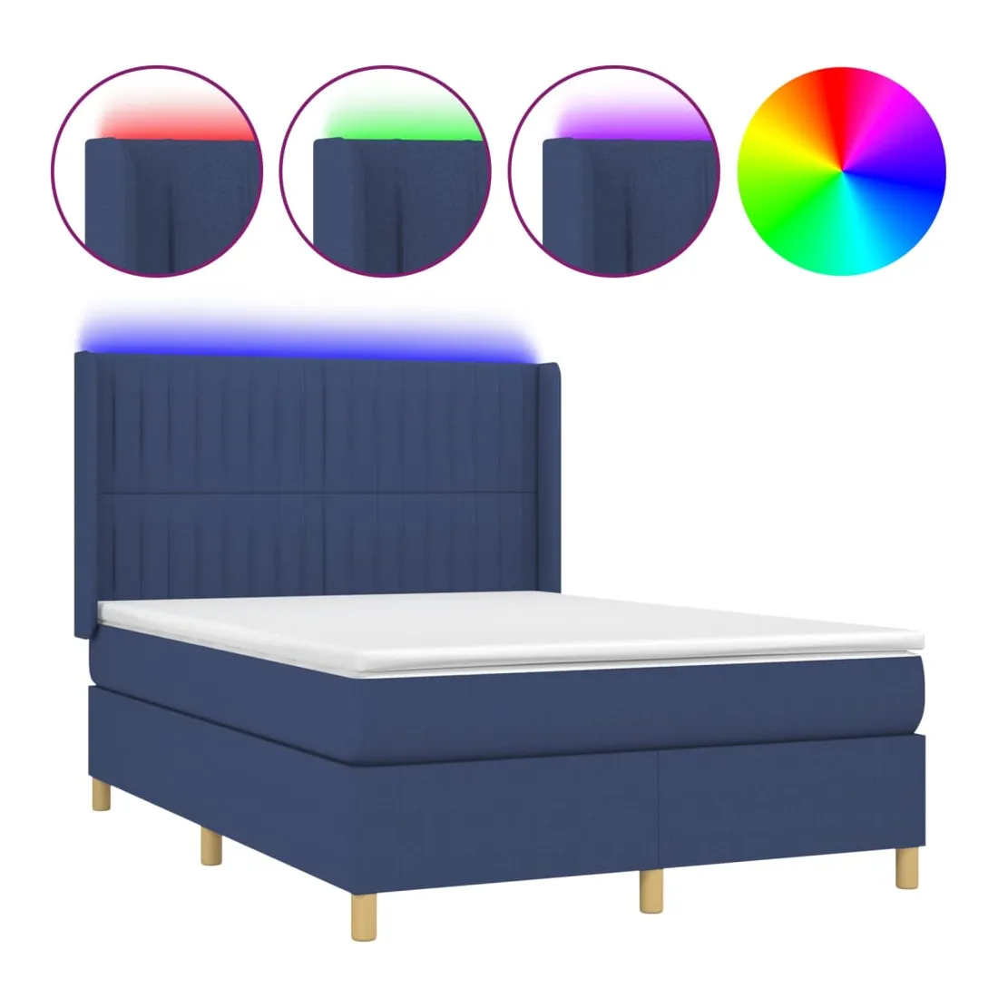 Sommier à lattes de lit matelas et LED Bleu 140x200 cm Tissu
