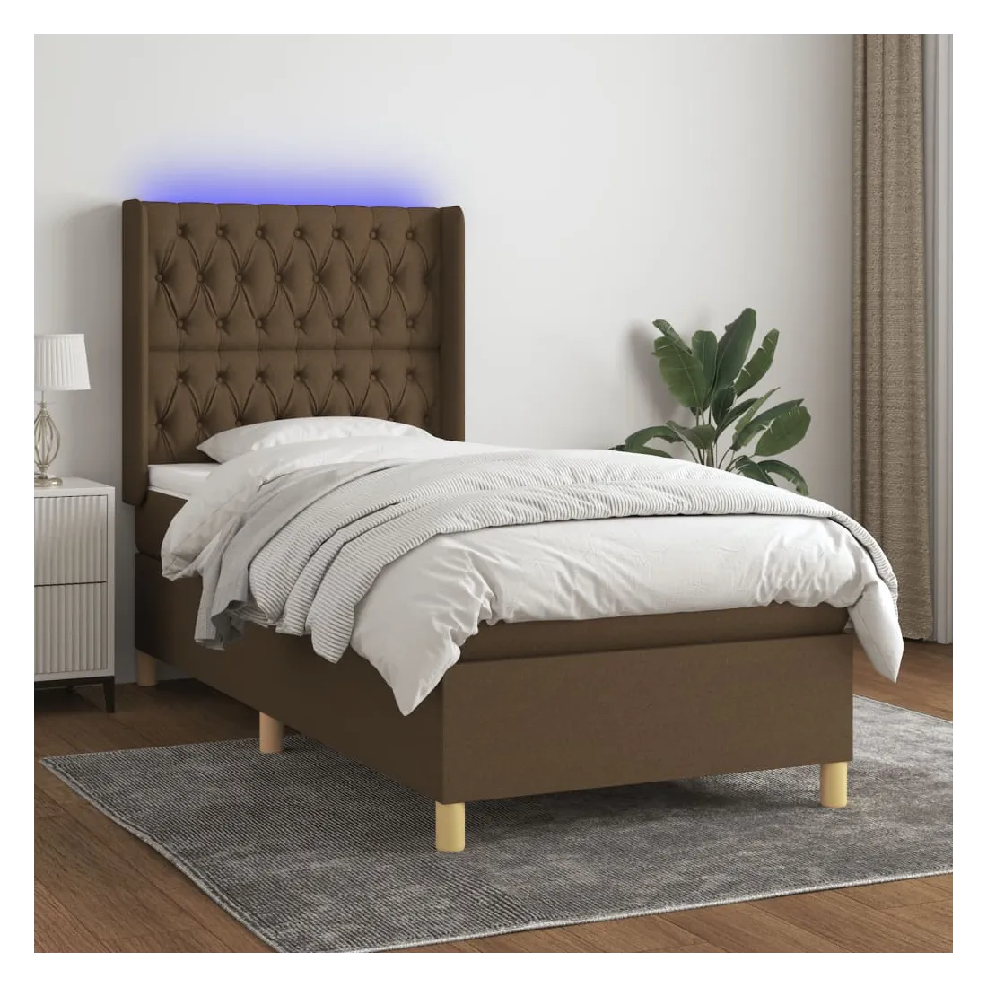Sommier à lattes de lit matelas LED Marron foncé 90x190cm Tissu