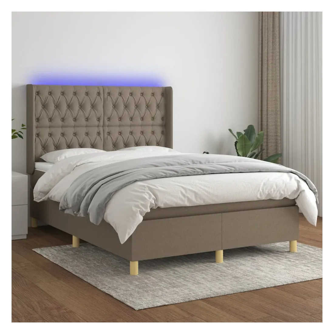 Sommier à lattes de lit matelas et LED Taupe 140x190 cm Tissu