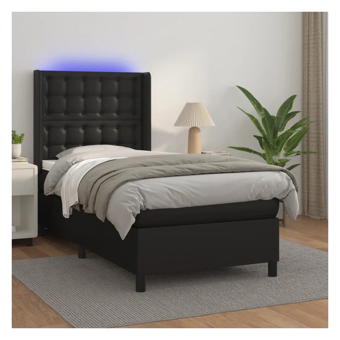 Sommier à lattes de lit matelas LED Noir 80x200 cm Similicuir