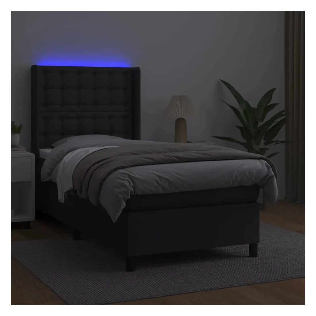 Utilisez ce sommier tapissier avec matelas et LED pour profiter d'un sommeil réparateur ! C'est le point central de votre chambre à coucher. Similicuir durable : le similicuir de qualité supérieure est un matériau très durable. Il est résistant aux taches, ce qui le rend facile à nettoyer avec un chiffon humide. La surface lisse donne également un aspect luxueux et la beauté du cuir véritable.Tête de lit pratique : la tête de lit est réglable en hauteur selon vos préférences. La tête de lit vous offre un excellent soutien du dos lorsque vous êtes assis dans votre lit pour lire ou regarder la télévision.Bande LED colorée : apportez de l'éclairage dans l'obscurité avec des lumières LED colorées !Matelas à ressorts ensachés : le ressort ensaché individuel intégré est connu pour sa très haute qualité tout en assurant un haut niveau de durabilité et d'adaptabilité. Il peut absorber efficacement le bruit et les chocs causés par les sauts et les rotations.Protège-matelas doux pour la peau : le protège-matelas est recouvert d'un tissu résistant et doux pour la peau, ce qui le rend souple et confortable. Remarque :Pour des raisons d'hygiène, le matelas ne peut pas être retourné si l'emballage est retiré ou ouvert.Seule la partie avec un symbole de ciseaux peut être coupée et seule la partie avec l'USB continuera à fonctionner comme avant.Chaque produit est livré avec un manuel de montage dans la boîte pour un montage facile.Ce produit est doté d'un connecteur USB, mais la source d'alimentation certifiée de USB 5V n'est pas incluse.