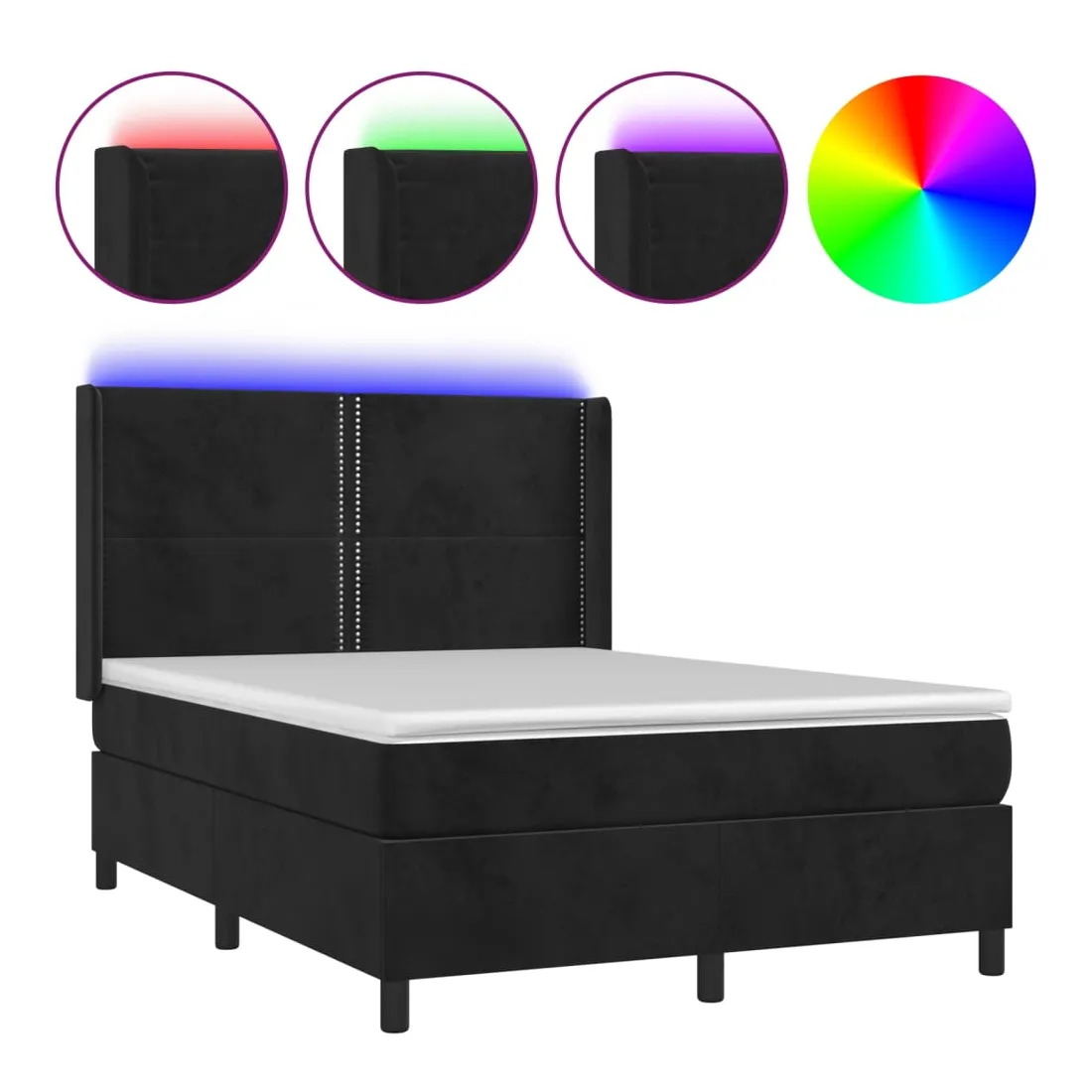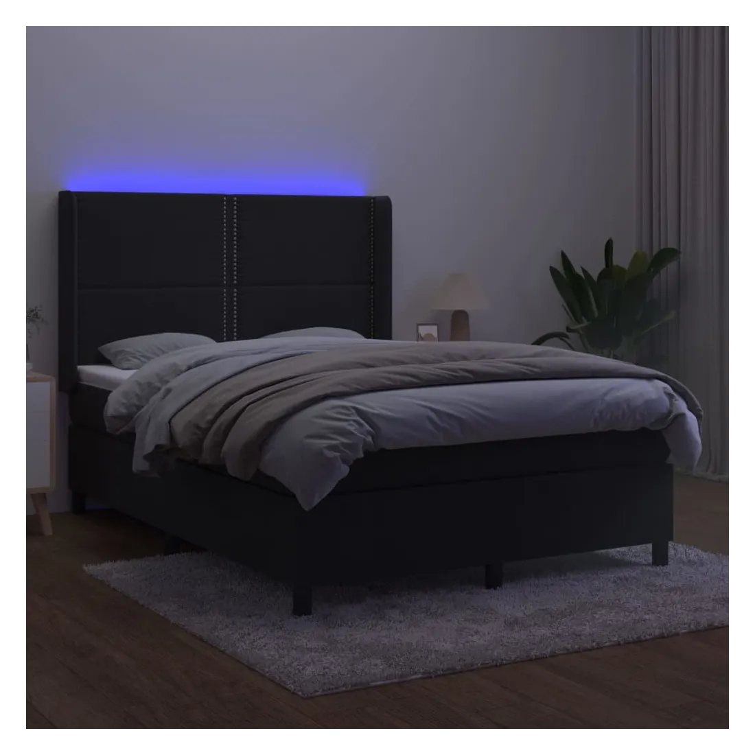Sommier à lattes de lit matelas et LED Noir 140x190 cm Velours