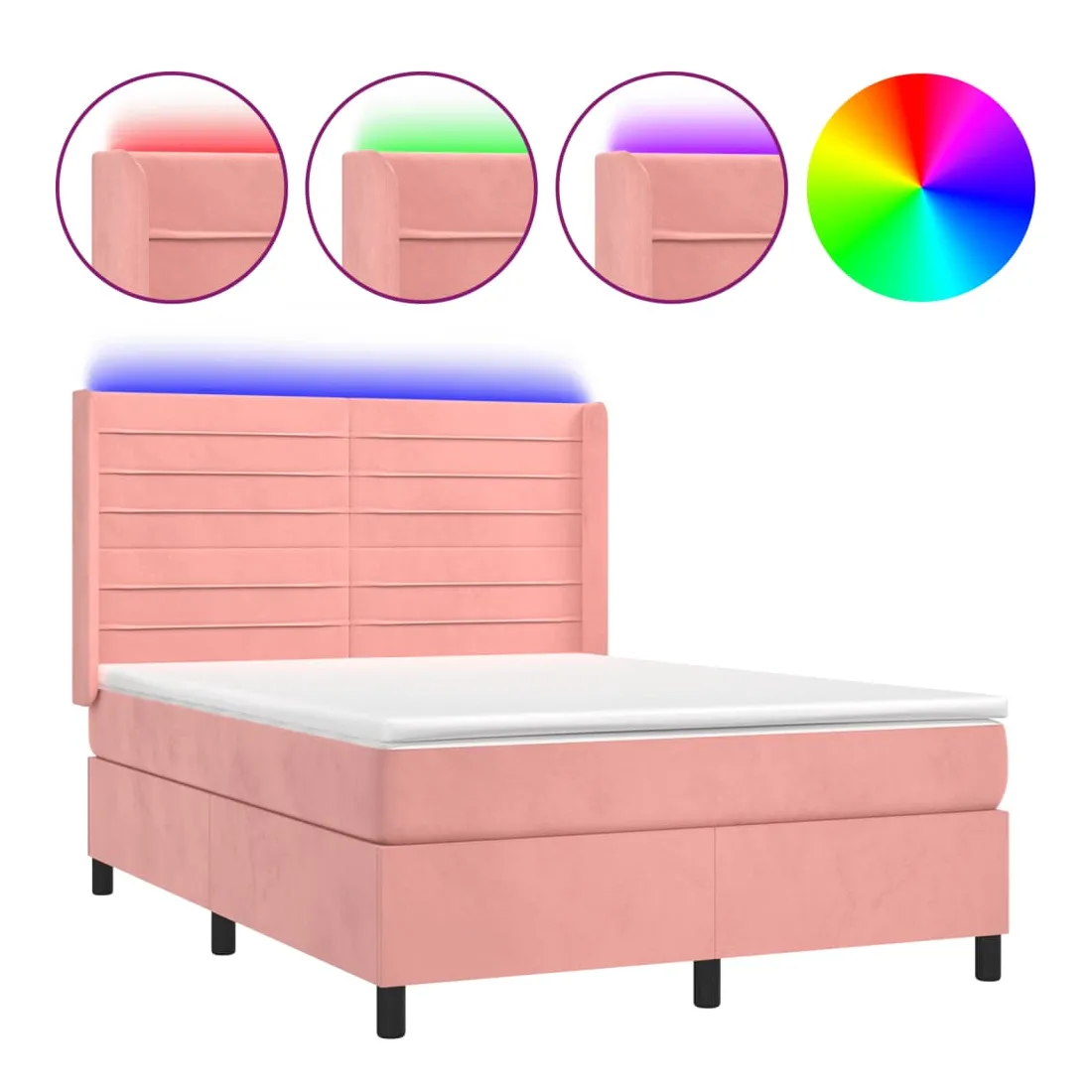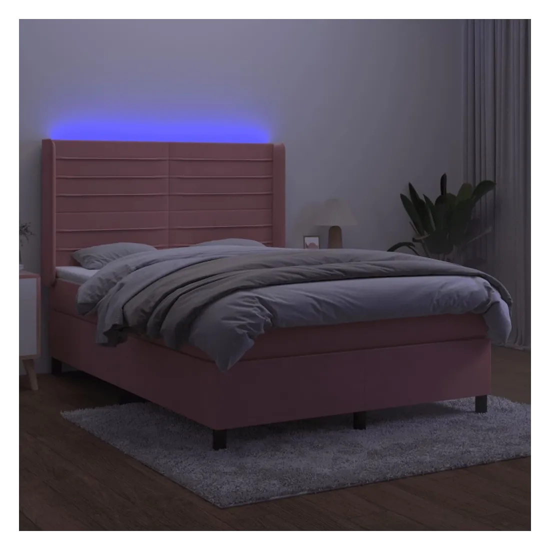 Sommier à lattes de lit matelas et LED Rose 140x190 cm Velours