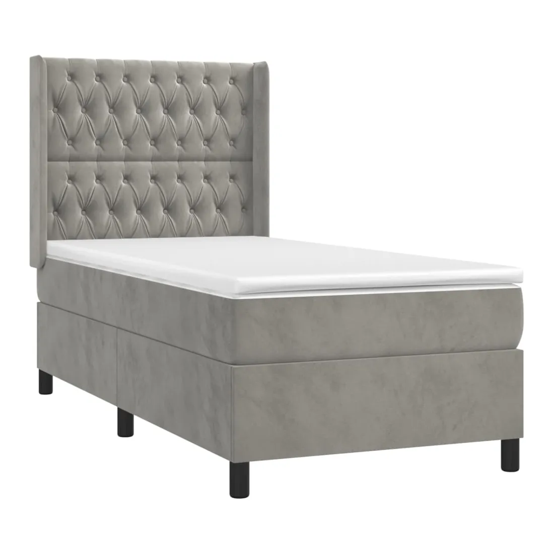 Utilisez ce sommier tapissier avec matelas et LED pour profiter d'un sommeil réparateur ! C'est le point central de votre chambre à coucher. Velours doux : le velours est un tissu doux et luxueux qui se reconnaît à son tas dense de fibres uniformément coupées qui ont une touche lisse. Le tissu en velours présente un toucher doux distinctif, ce qui le rend confortable au toucher.Tête de lit pratique : la tête de lit est réglable en hauteur selon vos préférences. La tête de lit vous offre un excellent soutien du dos lorsque vous êtes assis dans votre lit pour lire ou regarder la télévision.Bande LED colorée : apportez de l'éclairage dans l'obscurité avec des lumières LED colorées !Matelas à ressorts ensachés : le ressort ensaché individuel intégré est connu pour sa très haute qualité tout en assurant un haut niveau de durabilité et d'adaptabilité. Il peut absorber efficacement le bruit et les chocs causés par les sauts et les rotations.Protège-matelas doux pour la peau : le protège-matelas est recouvert d'un tissu résistant et doux pour la peau, ce qui le rend souple et confortable. Remarque :Pour des raisons d'hygiène, le matelas ne peut pas être retourné si l'emballage est retiré ou ouvert.Seule la partie avec un symbole de ciseaux peut être coupée et seule la partie avec l'USB continuera à fonctionner comme avant.Chaque produit est livré avec un manuel de montage dans la boîte pour un montage facile.Ce produit est doté d'un connecteur USB, mais la source d'alimentation certifiée de USB 5V n'est pas incluse.