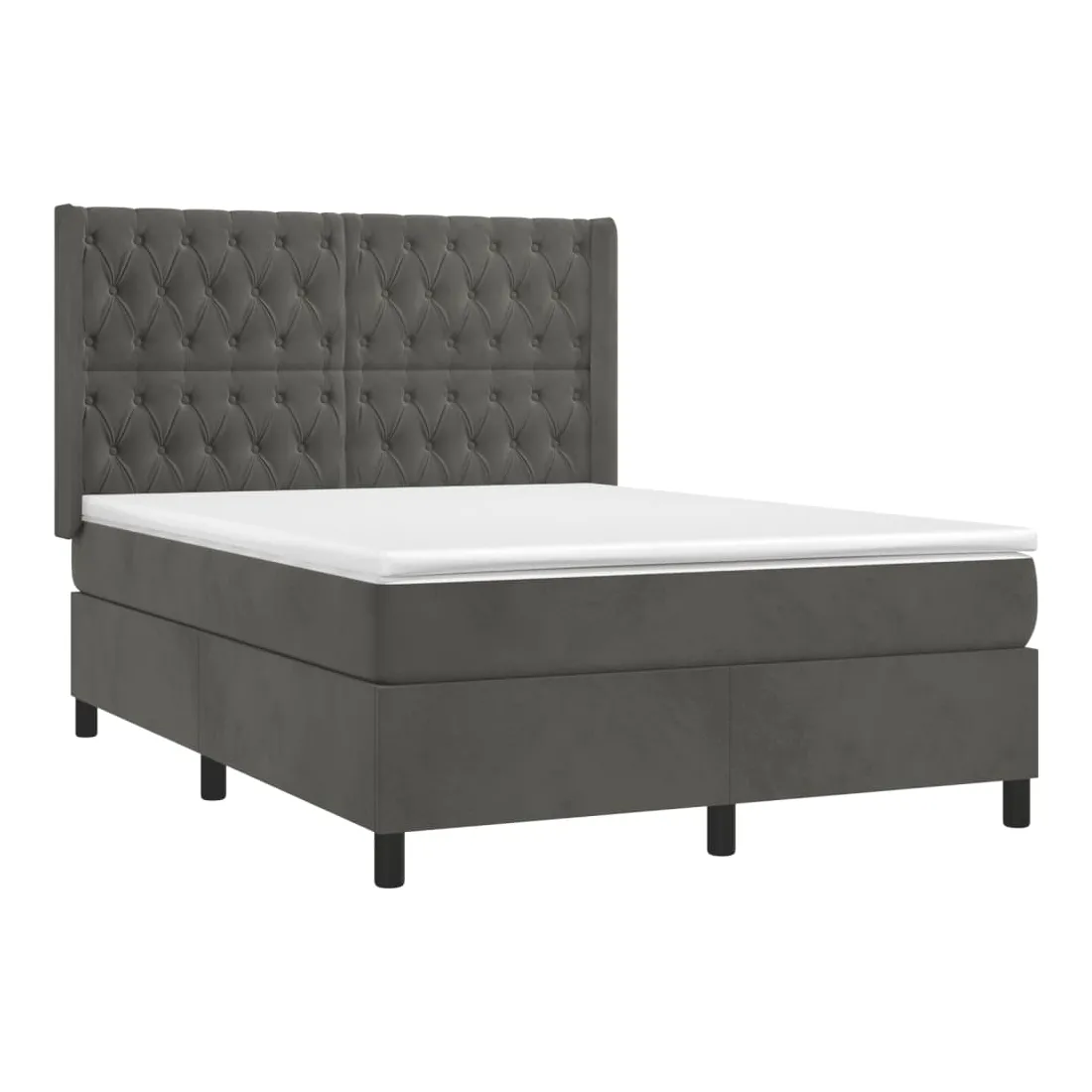 Utilisez ce sommier tapissier avec matelas et LED pour profiter d'un sommeil réparateur ! C'est le point central de votre chambre à coucher. Velours doux : le velours est un tissu doux et luxueux qui se reconnaît à son tas dense de fibres uniformément coupées qui ont une touche lisse. Le tissu en velours présente un toucher doux distinctif, ce qui le rend confortable au toucher.Tête de lit pratique : la tête de lit est réglable en hauteur selon vos préférences. La tête de lit vous offre un excellent soutien du dos lorsque vous êtes assis dans votre lit pour lire ou regarder la télévision.Bande LED colorée : apportez de l'éclairage dans l'obscurité avec des lumières LED colorées !Matelas à ressorts ensachés : le ressort ensaché individuel intégré est connu pour sa très haute qualité tout en assurant un haut niveau de durabilité et d'adaptabilité. Il peut absorber efficacement le bruit et les chocs causés par les sauts et les rotations.Protège-matelas doux pour la peau : le protège-matelas est recouvert d'un tissu résistant et doux pour la peau, ce qui le rend souple et confortable. Remarque :Pour des raisons d'hygiène, le matelas ne peut pas être retourné si l'emballage est retiré ou ouvert.Seule la partie avec un symbole de ciseaux peut être coupée et seule la partie avec l'USB continuera à fonctionner comme avant.Chaque produit est livré avec un manuel de montage dans la boîte pour un montage facile.Ce produit est doté d'un connecteur USB, mais la source d'alimentation certifiée de USB 5V n'est pas incluse.