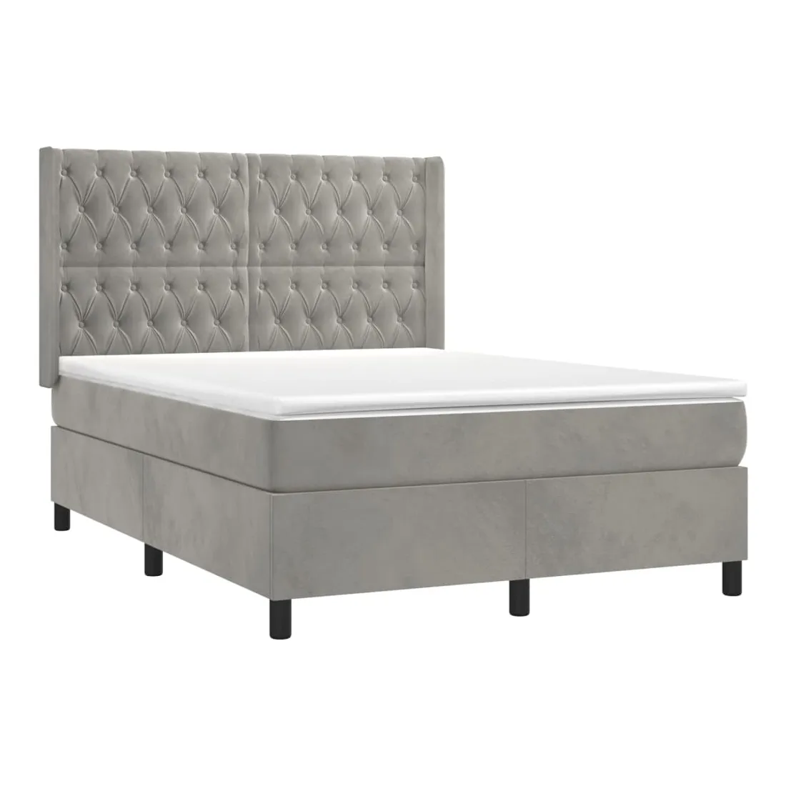 Utilisez ce sommier tapissier avec matelas et LED pour profiter d'un sommeil réparateur ! C'est le point central de votre chambre à coucher. Velours doux : le velours est un tissu doux et luxueux qui se reconnaît à son tas dense de fibres uniformément coupées qui ont une touche lisse. Le tissu en velours présente un toucher doux distinctif, ce qui le rend confortable au toucher.Tête de lit pratique : la tête de lit est réglable en hauteur selon vos préférences. La tête de lit vous offre un excellent soutien du dos lorsque vous êtes assis dans votre lit pour lire ou regarder la télévision.Bande LED colorée : apportez de l'éclairage dans l'obscurité avec des lumières LED colorées !Matelas à ressorts ensachés : le ressort ensaché individuel intégré est connu pour sa très haute qualité tout en assurant un haut niveau de durabilité et d'adaptabilité. Il peut absorber efficacement le bruit et les chocs causés par les sauts et les rotations.Protège-matelas doux pour la peau : le protège-matelas est recouvert d'un tissu résistant et doux pour la peau, ce qui le rend souple et confortable. Remarque :Pour des raisons d'hygiène, le matelas ne peut pas être retourné si l'emballage est retiré ou ouvert.Seule la partie avec un symbole de ciseaux peut être coupée et seule la partie avec l'USB continuera à fonctionner comme avant.Chaque produit est livré avec un manuel de montage dans la boîte pour un montage facile.Ce produit est doté d'un connecteur USB, mais la source d'alimentation certifiée de USB 5V n'est pas incluse.